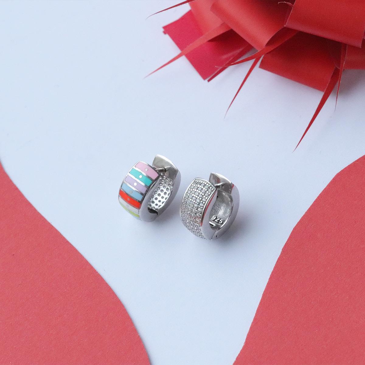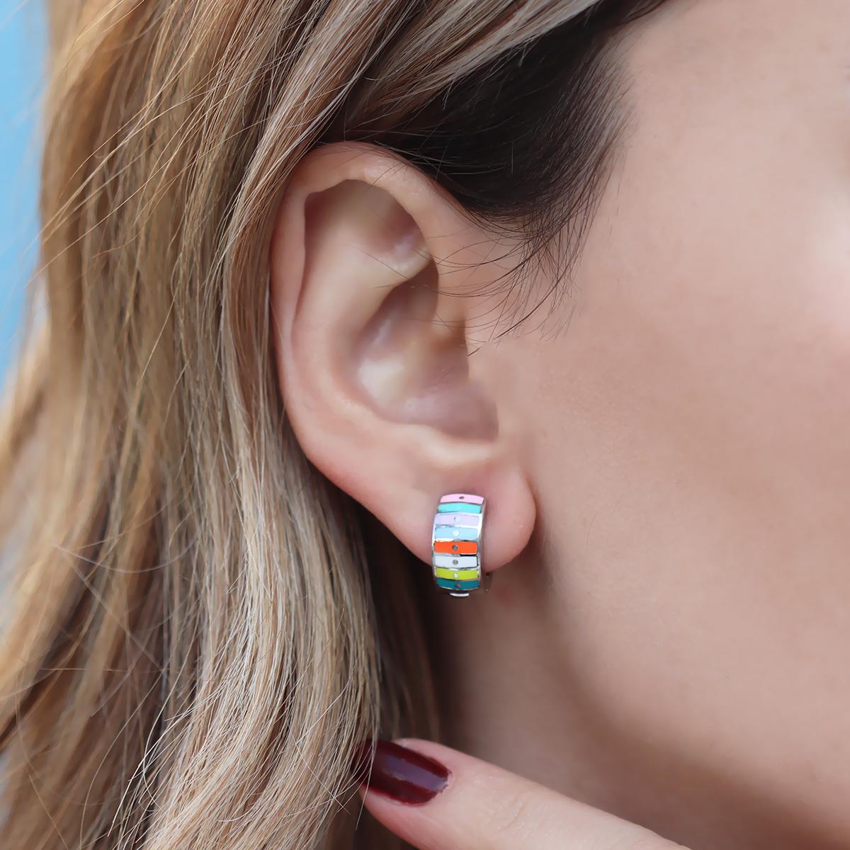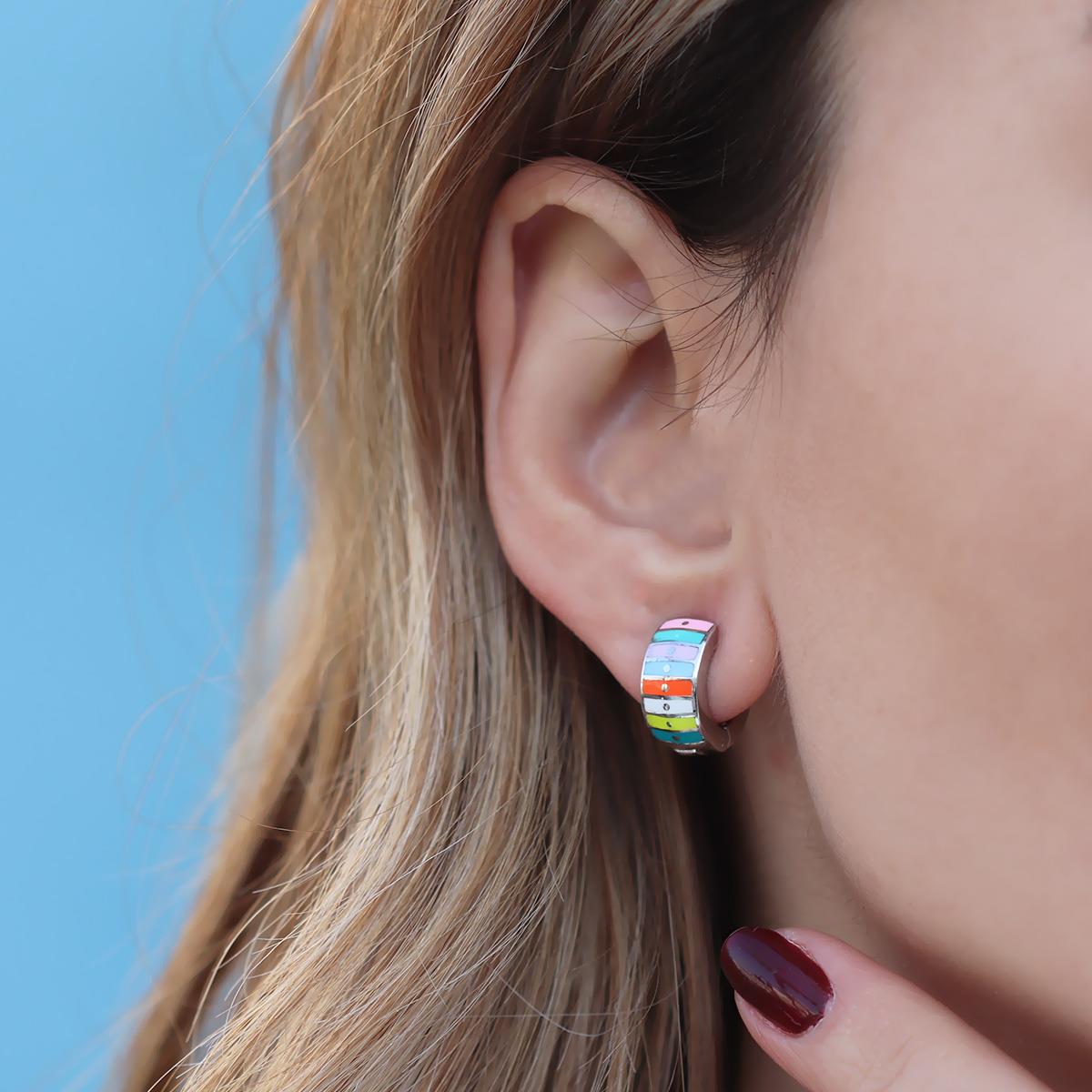 Alice Çift Taraflı Renkli Mine İşli Gümüş Halka Küpe (kpzrk049258)