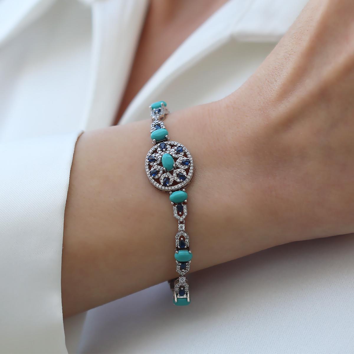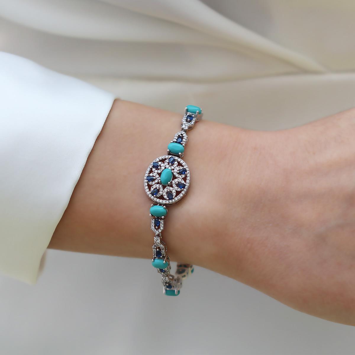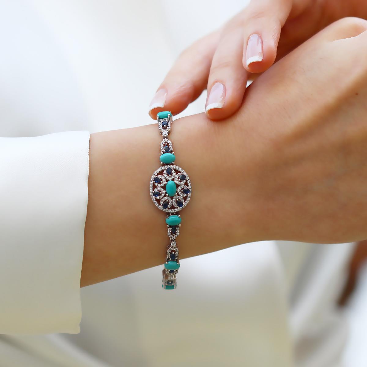 • Safir, Turkuaz ve Zirkon taşlarının uyumlu birlikteliği.