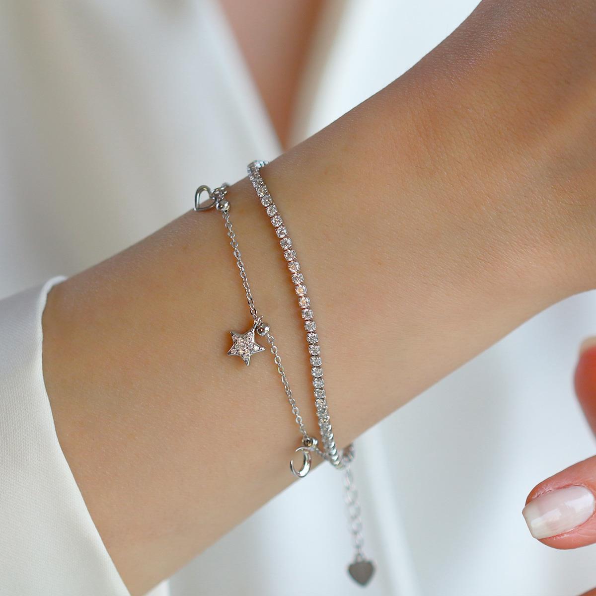 Ay Yıldız Su Yolu Gümüş Bileklik (ZRBLK000004125)