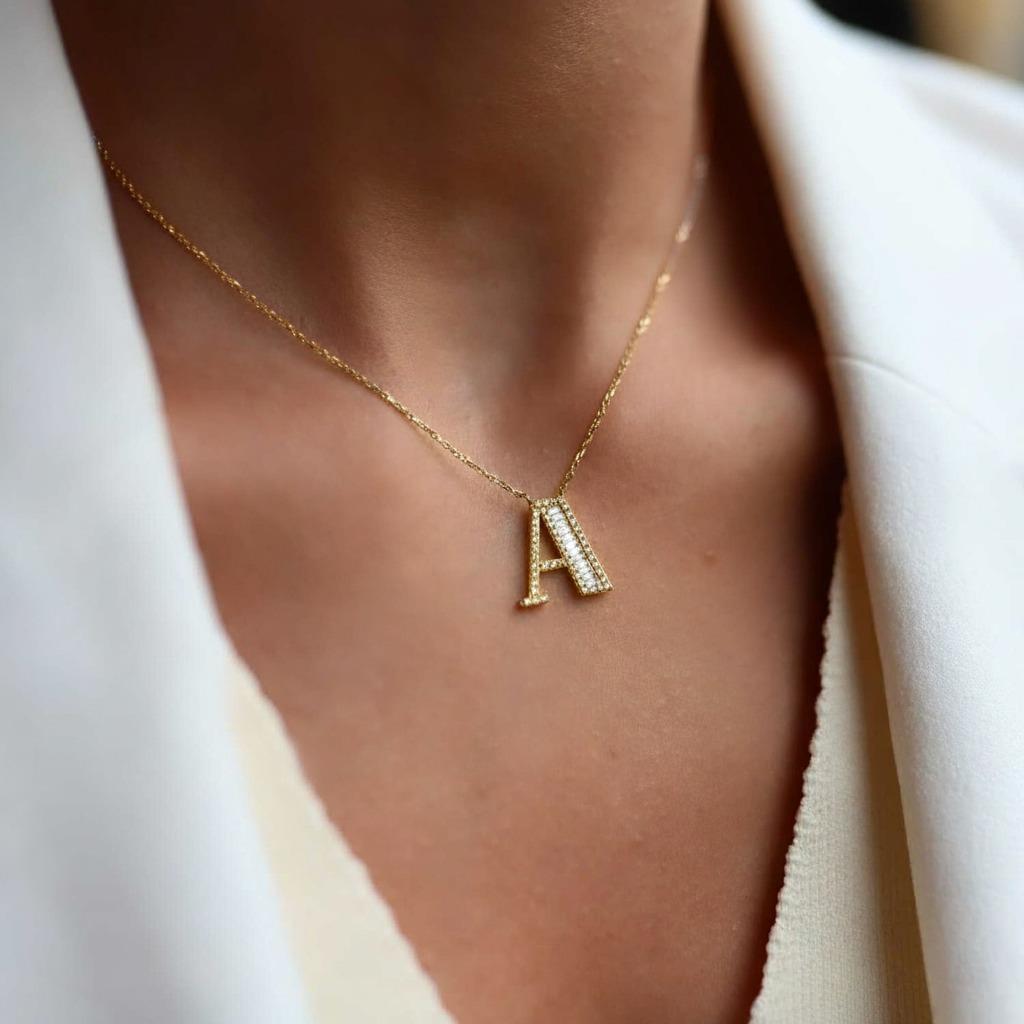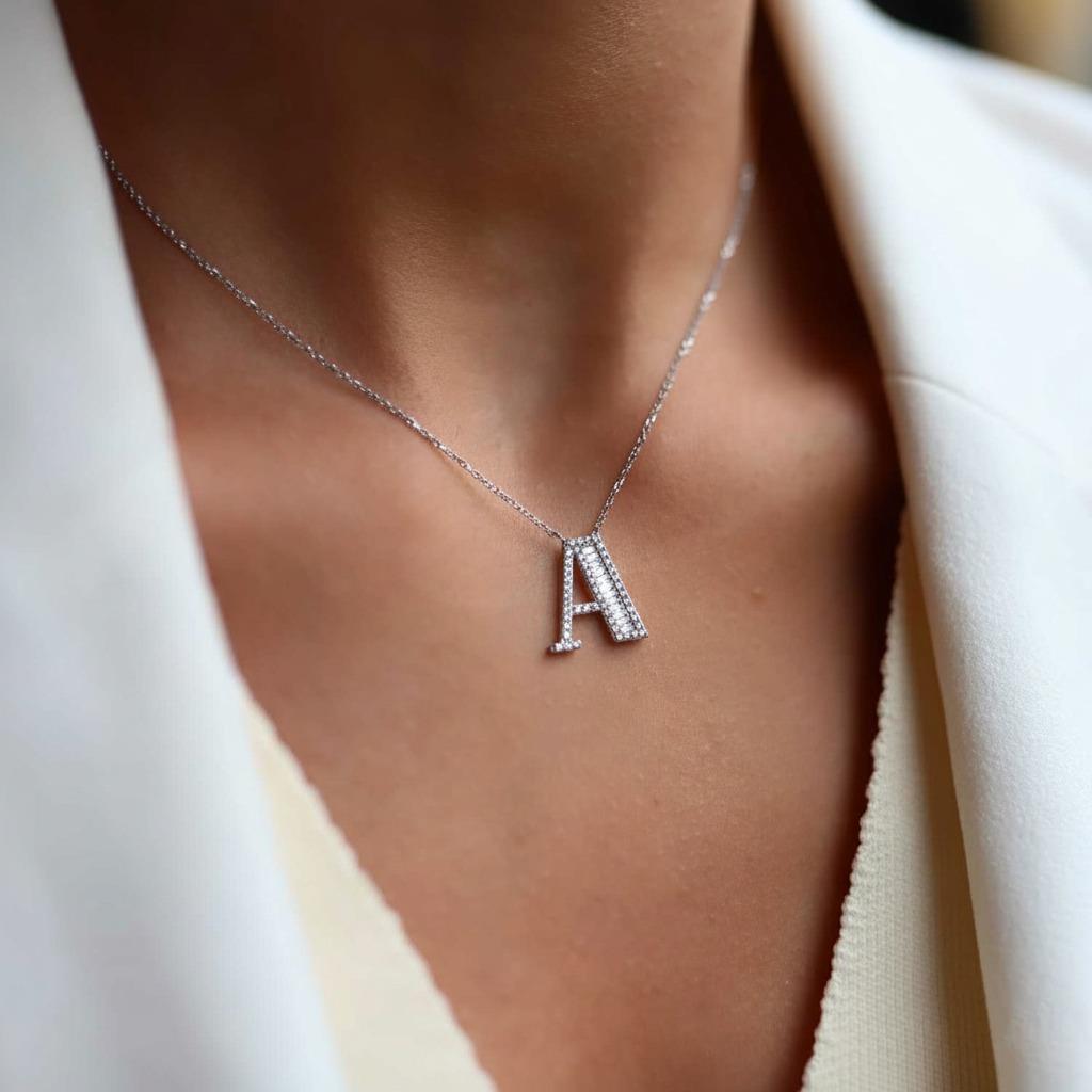 Baget Taşlı Harf Gümüş Kolye (kısmkl000109)