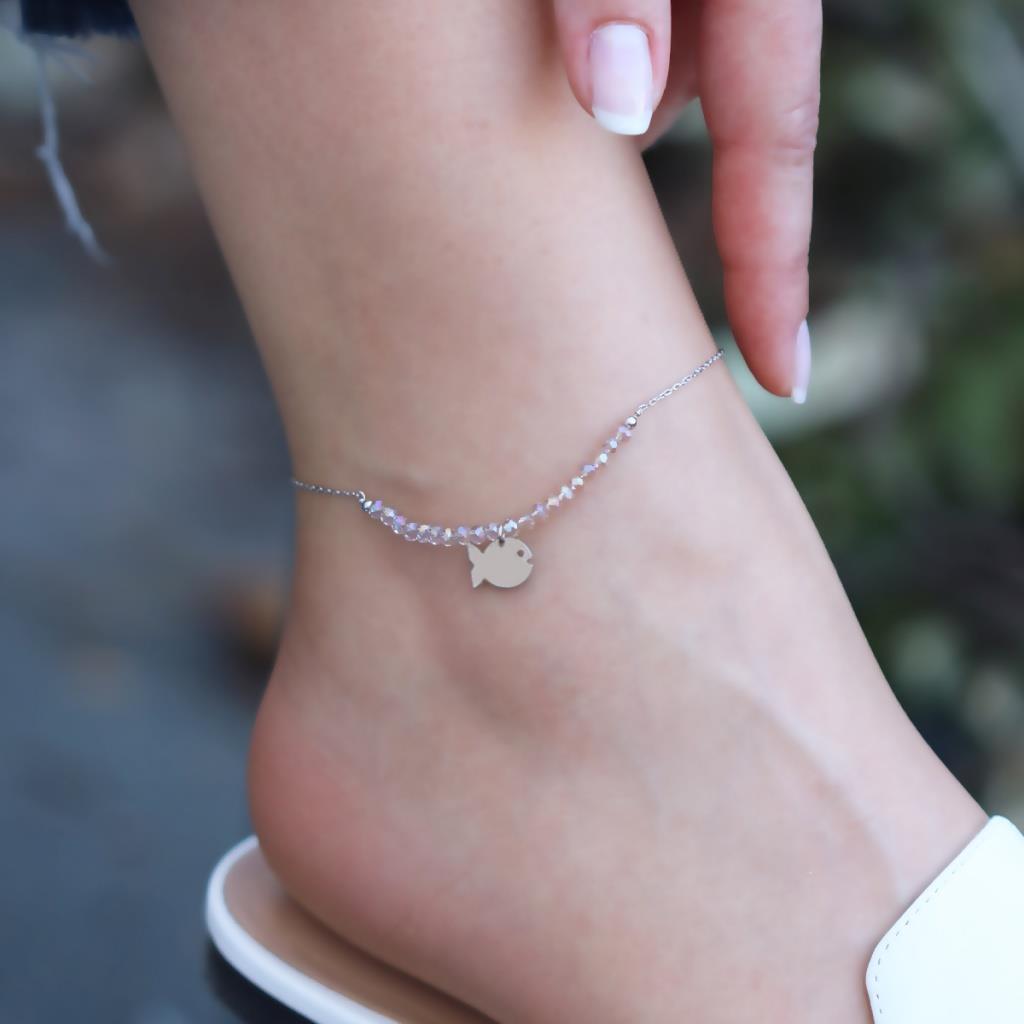 Balık Doğal Taşlı Gümüş Halhal ( hhgms004553)