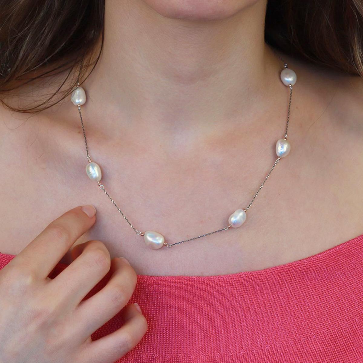 Barok İnci Oval Gümüş Kolye (kldglts001124)