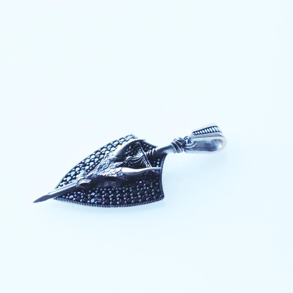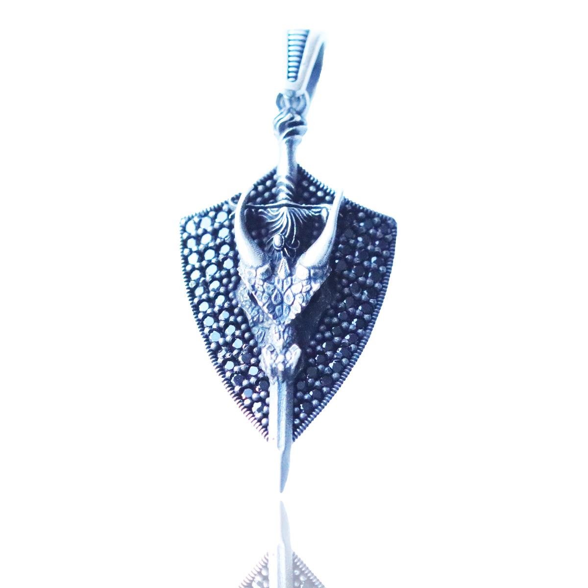 Boynuzlu Ejderha Kalkan Figürlü Oksitli Gümüş Erkek Kolye Ucu (kldzn001938)