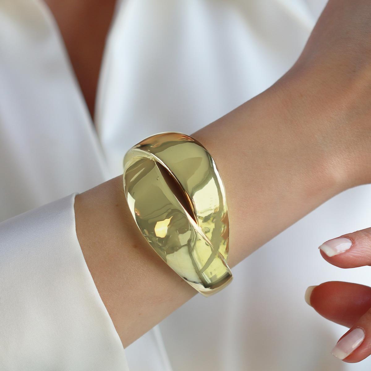 Çapraz Bombeli Gold Gümüş Kelepçe (KLPDUZ00000097)