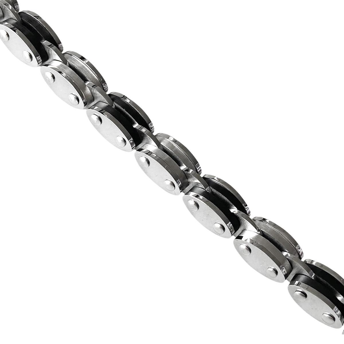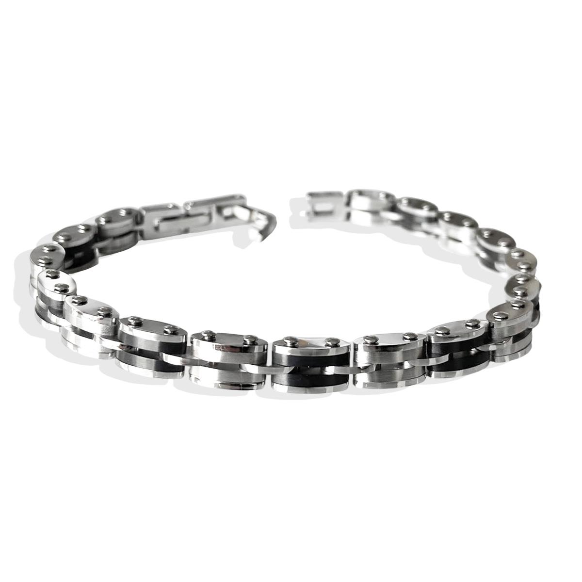 Çift Taraflı Siyah Sılver Çelik Erkek Bileklik (CLKBLK00007715)