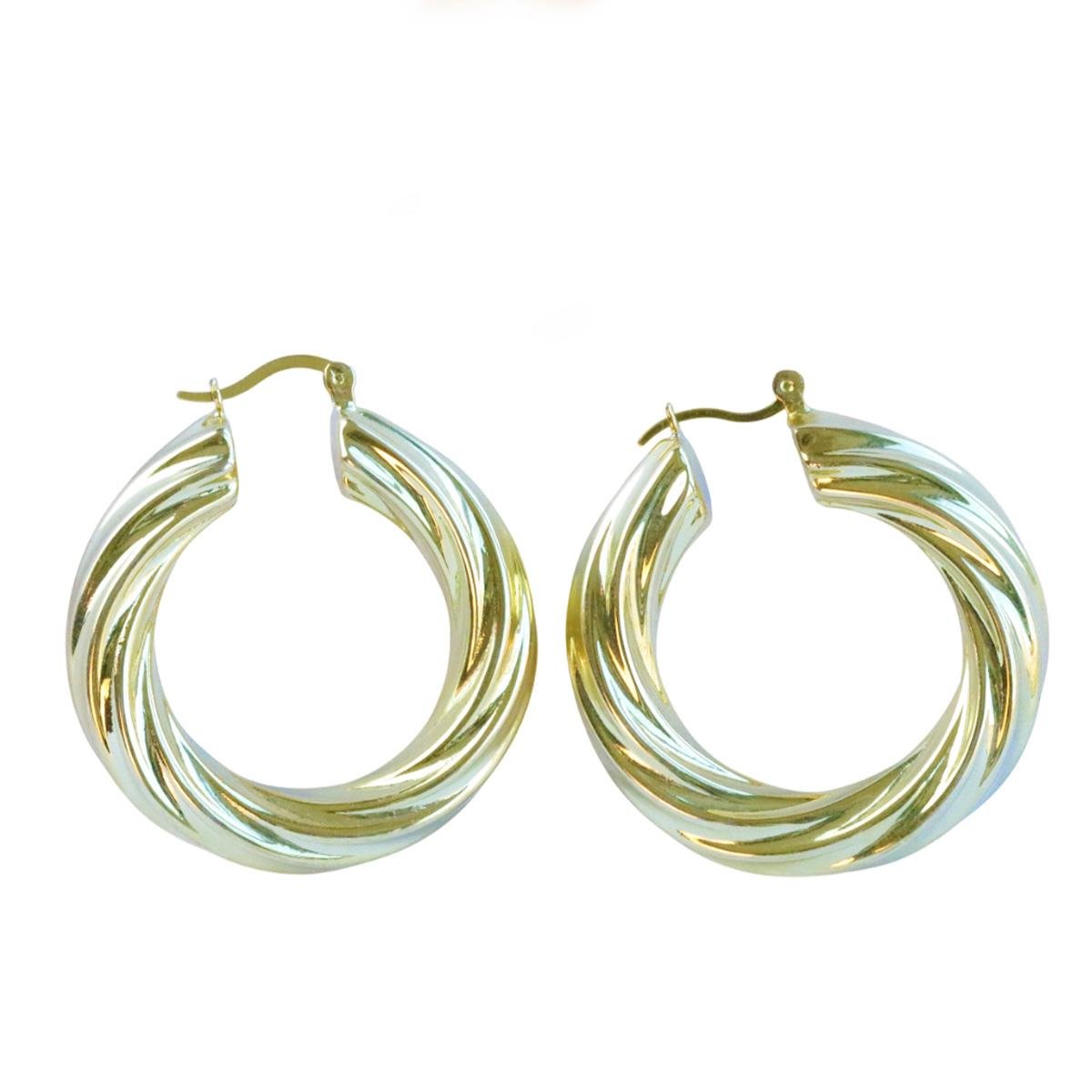 Çizgili Bombeli Halka Gümüş Küpe