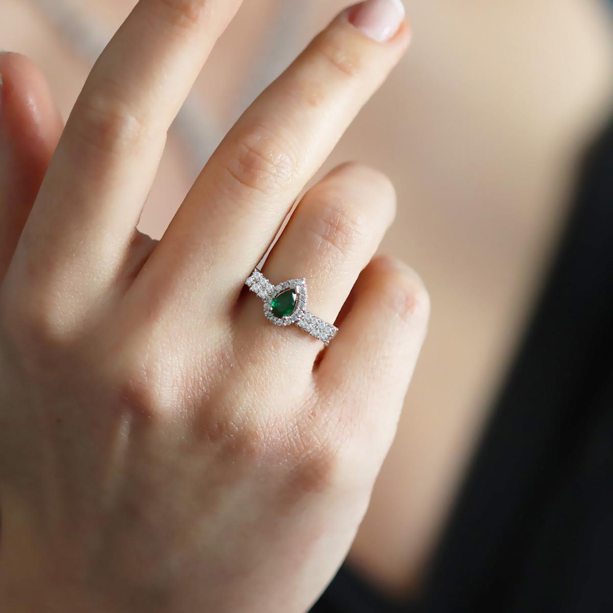 Damla Başak Modeli Yeşil Zirkon Taşlı Sarkıt Gümüş Set (ZR2TK000015228)