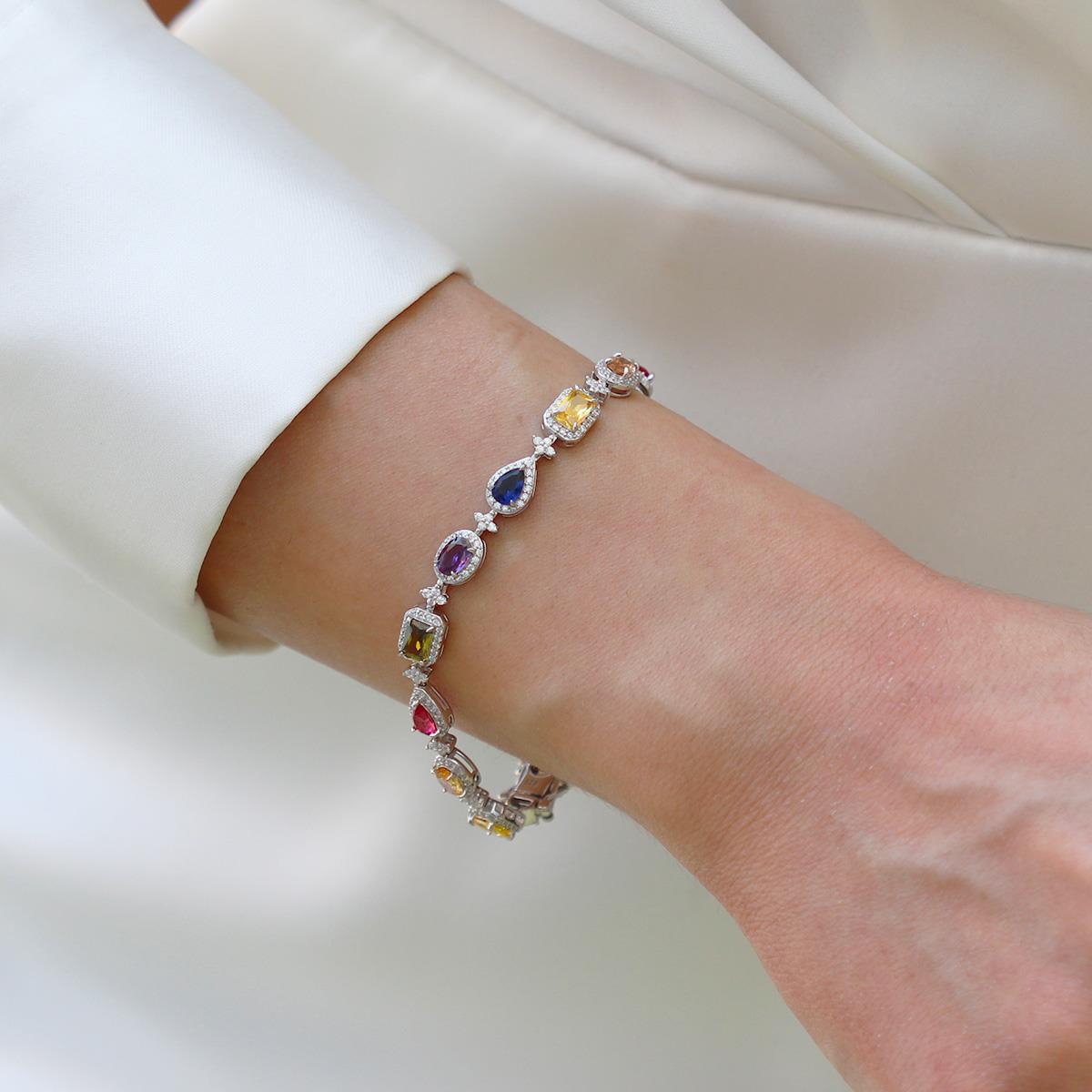 Damla Çiçek Renkli Zirkon Taşlı Gümüş Bileklik