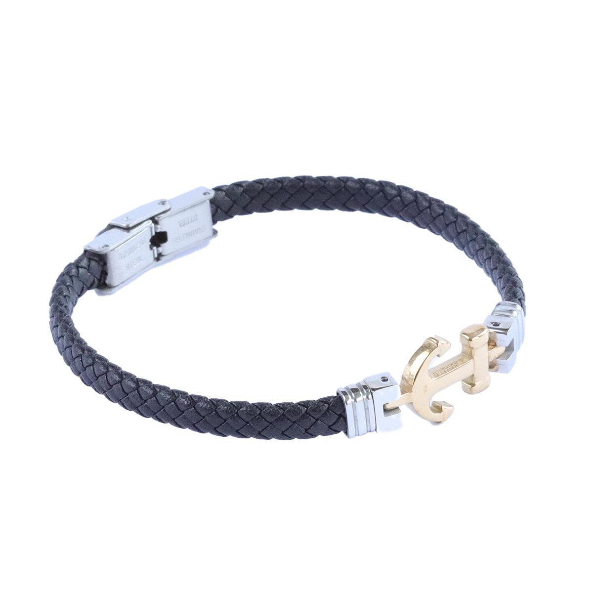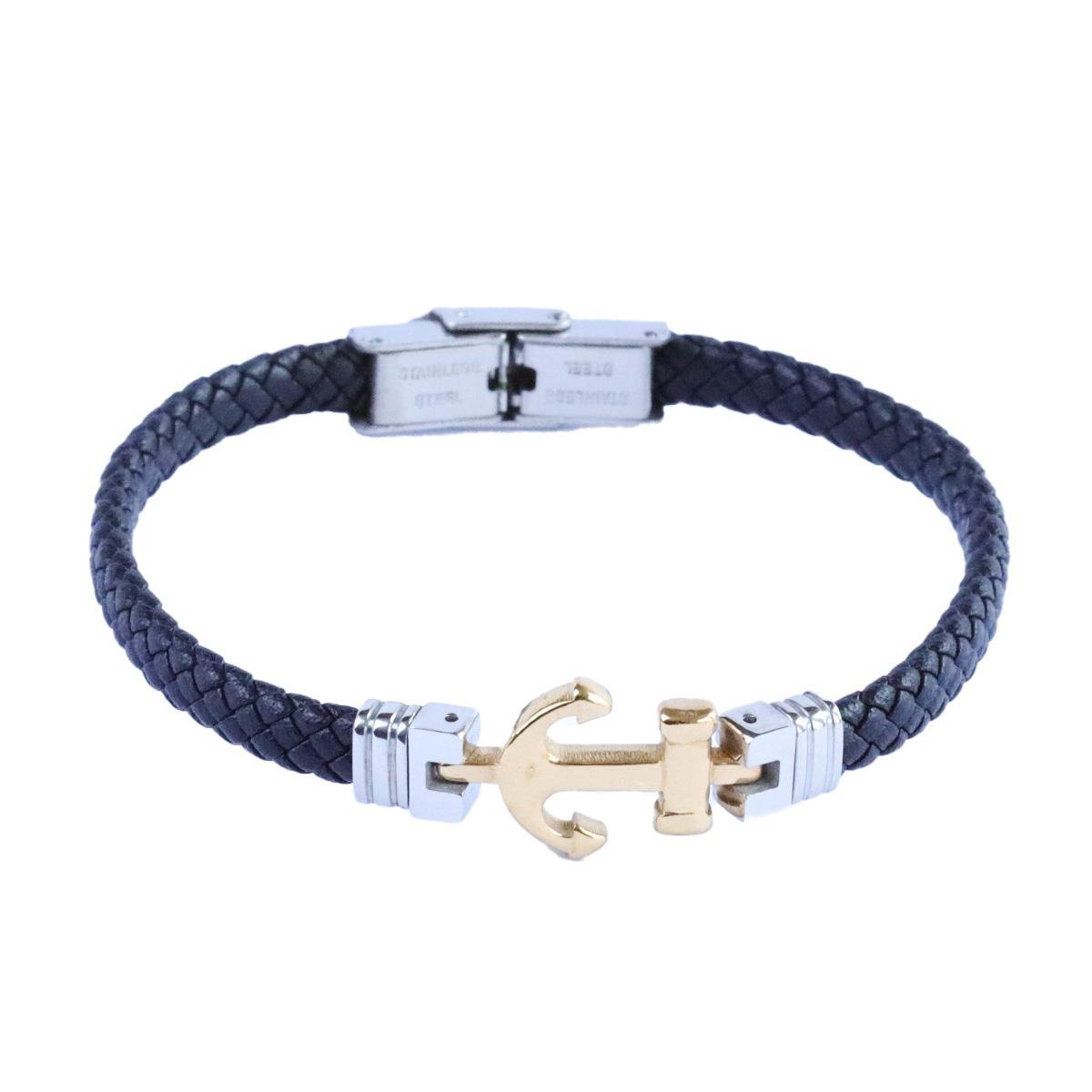 Deniz Çapalı Örgülü Deri Çelik Erkek Bileklik (DBLK0000005316)