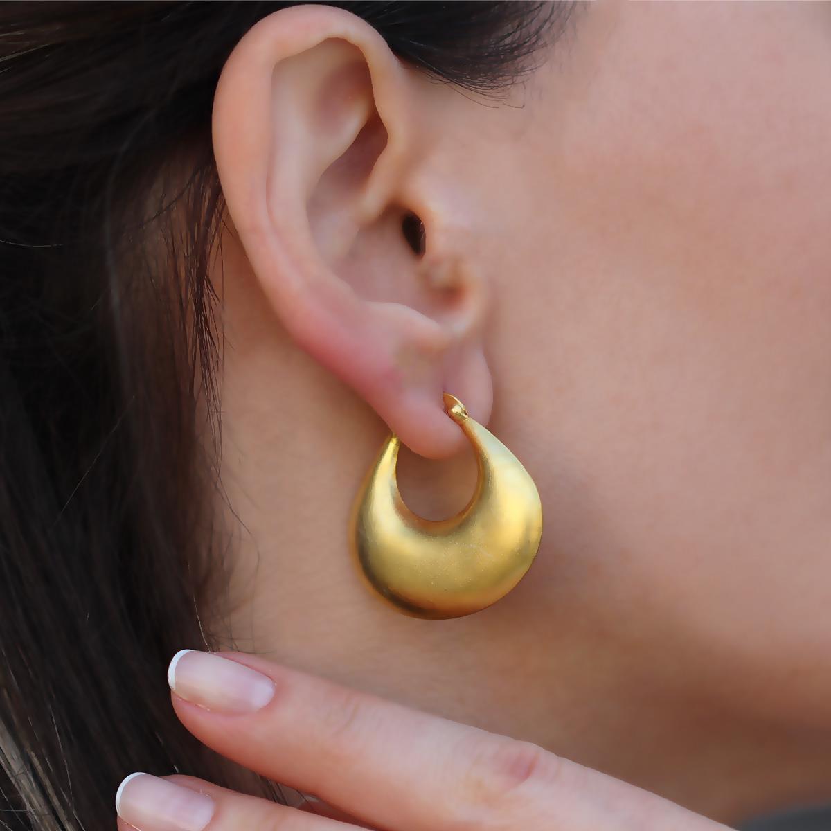 Elips Yassı Bombeli Gold Gümüş Küpe