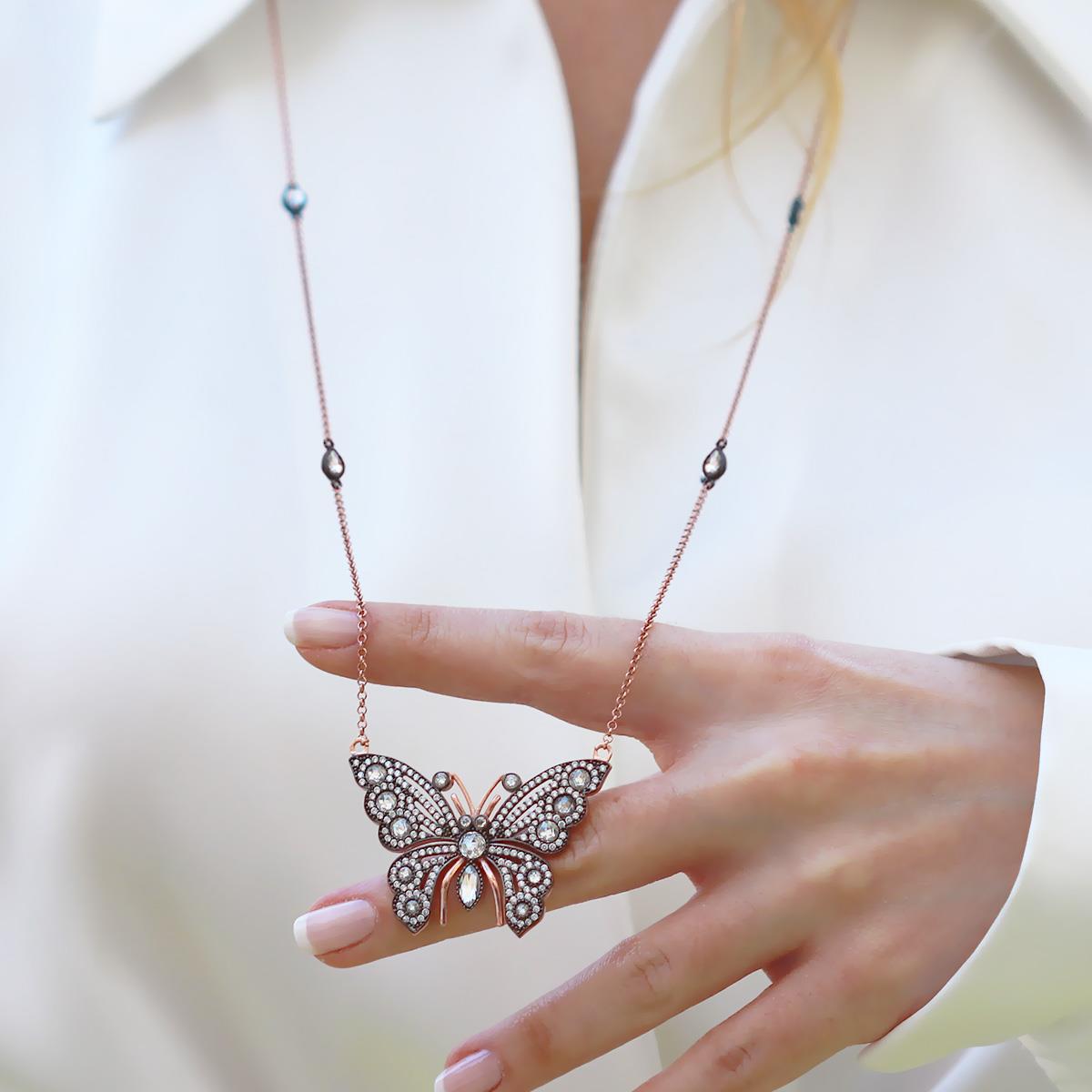Elmas Montür Model Kelebek Gümüş Kolye (KLZRK000000960)