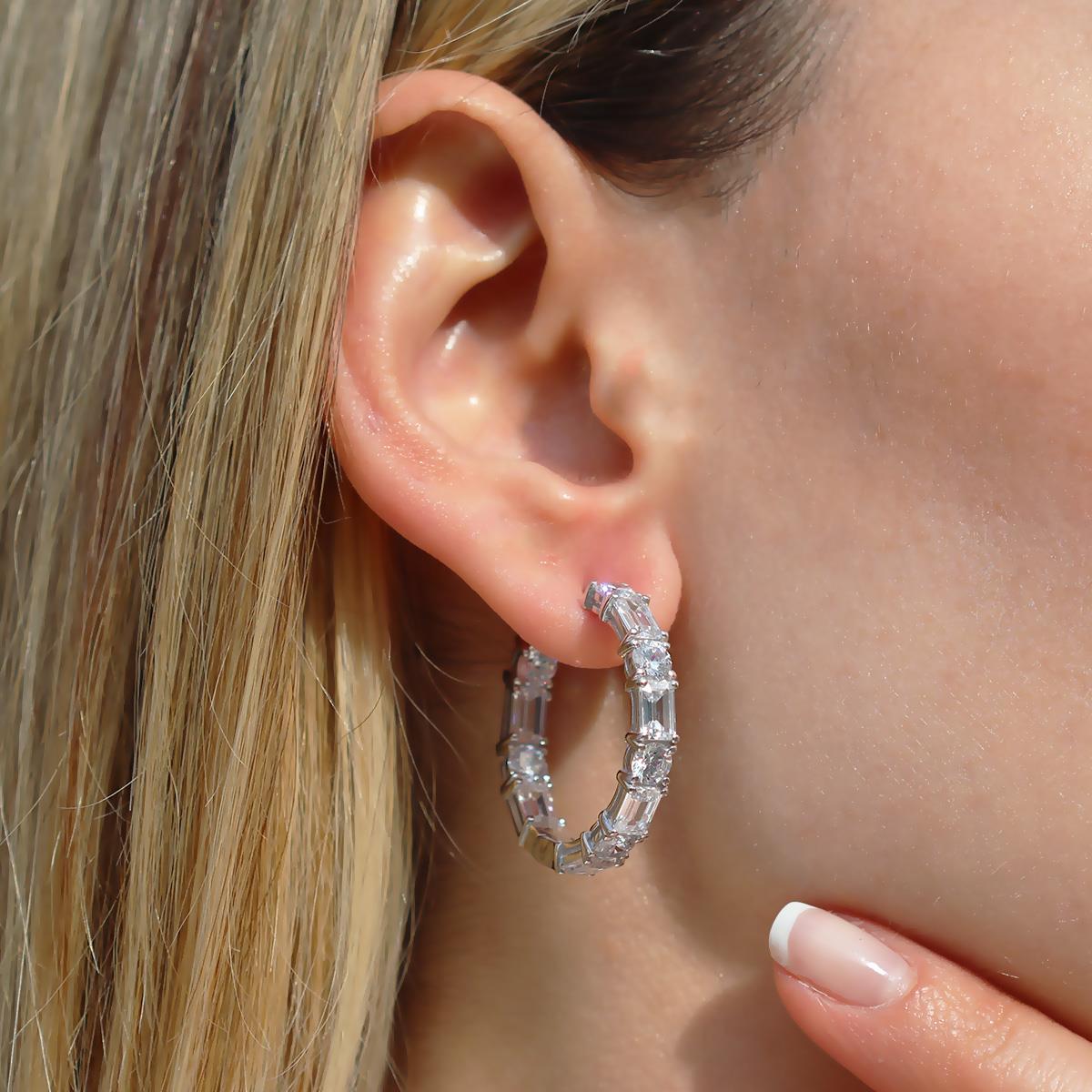 Emerald Taşlı Halka Gümüş Küpe (ZRKP0000002156)