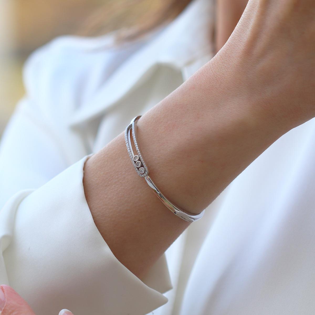 Msska Zirkon Taşlı Gümüş Kelepçe – Modern Işıltının Zarif Dokunuşu