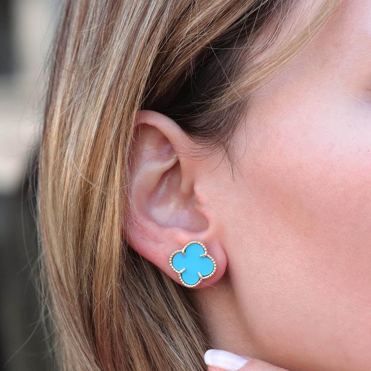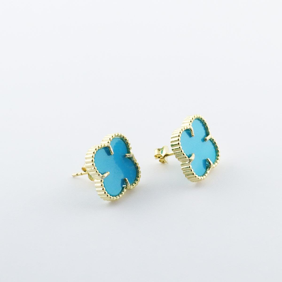 İkonik Alhambra Modeli Mavi Mine İşli Gold Kaplama Gümüş Küpe (kpzrk047943)