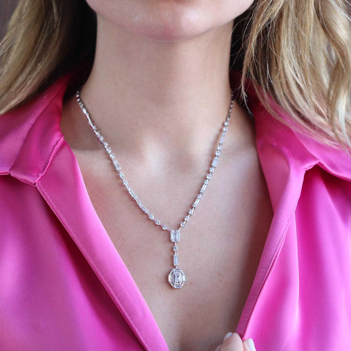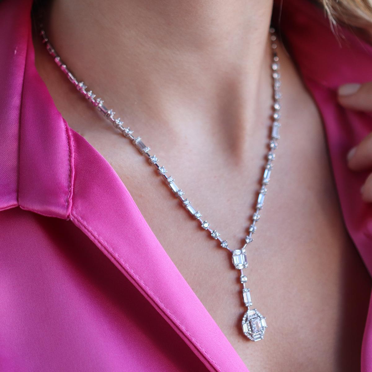 Şıklığıyla ve parıltısıyla dikkat çeken baget taşlı ışık gerdanlığımız...