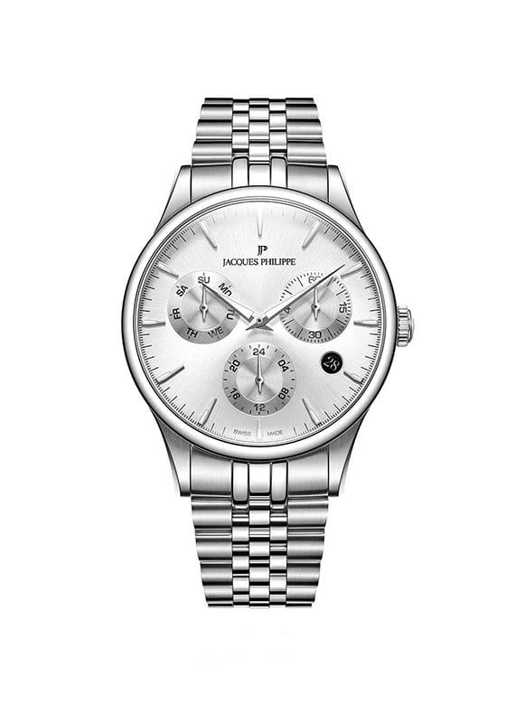 Jacques Philippe'nin seçkin koleksiyonundan bu özel saat modeli, göz alıcı detayları ile öne çıkıyor. Yuvarlak kasa yapısı ve Çelik kordon özelliği ile erkekler için ideal bir seçim. 5 ATM ile günlük kullanıma uygun olan bu şık saat, 40 mm kasa çapı ile mükemmel bir kullanım deneyimi sunuyor. Metalik Gri kadranı ve Safir camı ile uzun ömürlü kullanım için tasarlandı.