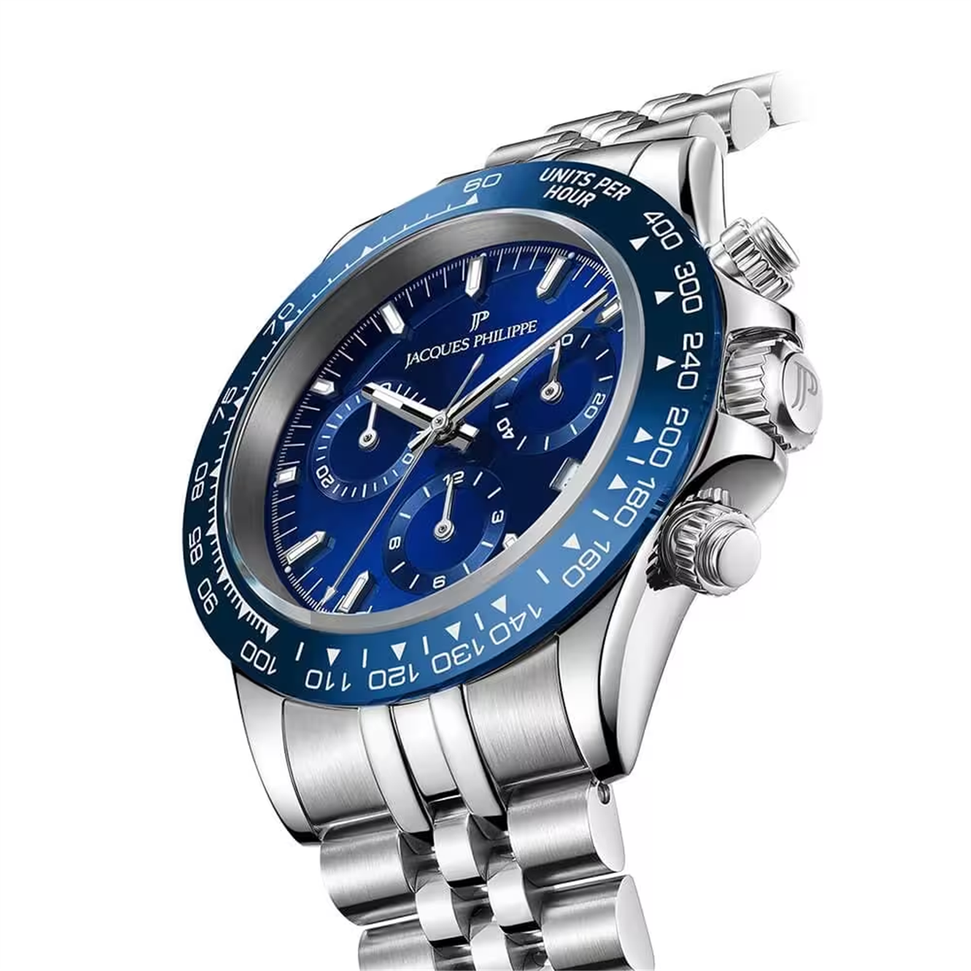 Jacques Philippe'nin seçkin koleksiyonundan bu özel saat modeli, benzersiz tasarımı ile öne çıkıyor. Yuvarlak kasa yapısı ve Çelik kordon özelliği ile erkekler için ideal bir seçim. 5 ATM ile günlük kullanıma uygun olan bu şık saat, 39 mm kasa çapı ile mükemmel bir kullanım deneyimi sunuyor. Mavi kadranı ve Safir camı ile uzun ömürlü kullanım için tasarlandı.