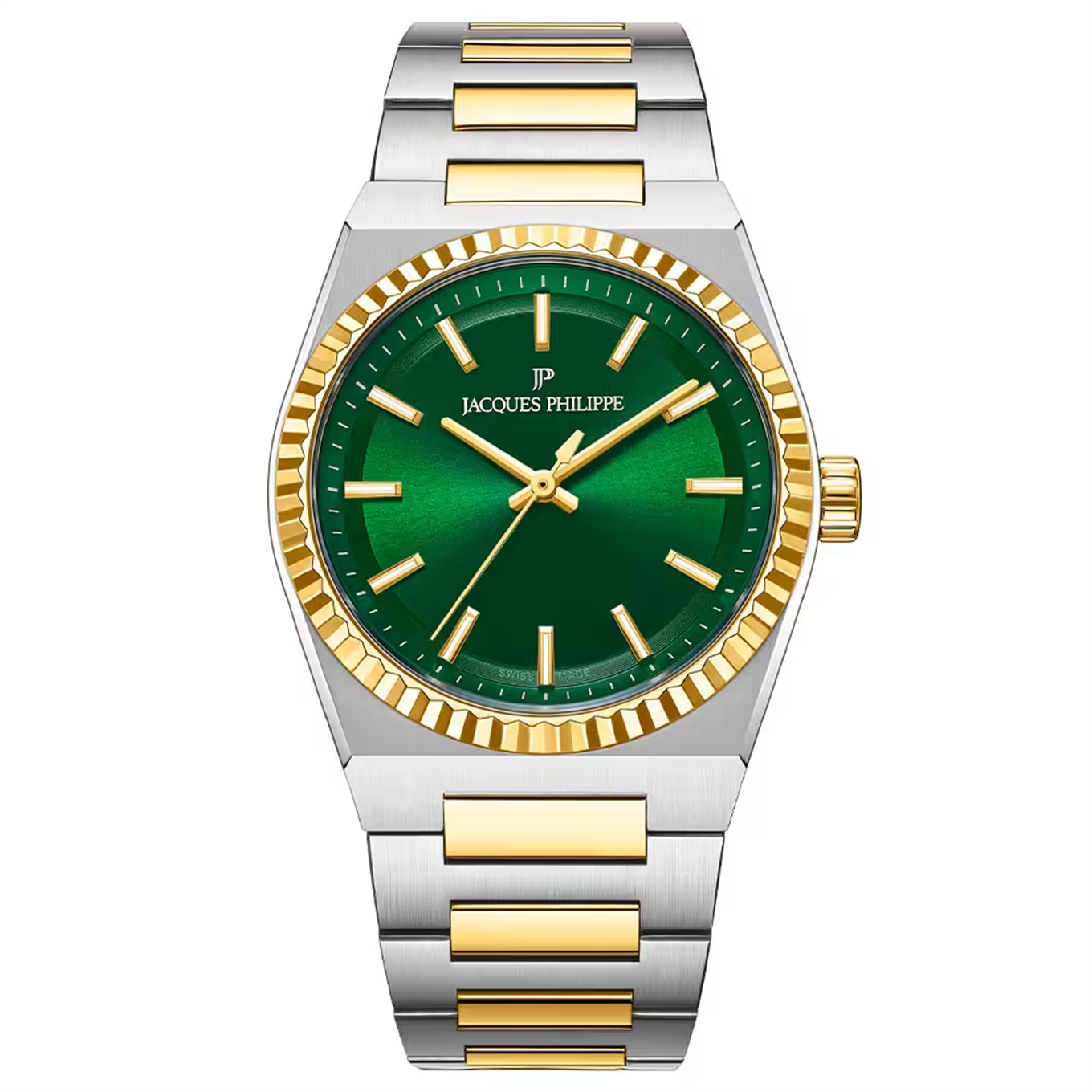 Jacques Philippe'nin seçkin koleksiyonundan bu özel saat modeli, üstün kalitesi ile öne çıkıyor. Yuvarlak kasa yapısı ve Çelik kordon özelliği ile kadınlar için ideal bir seçim. 5 ATM ile günlük kullanıma uygun olan bu şık saat, 34 mm kasa çapı ile mükemmel bir kullanım deneyimi sunuyor. Yeşil kadranı ve Safir camı ile uzun ömürlü kullanım için tasarlandı.