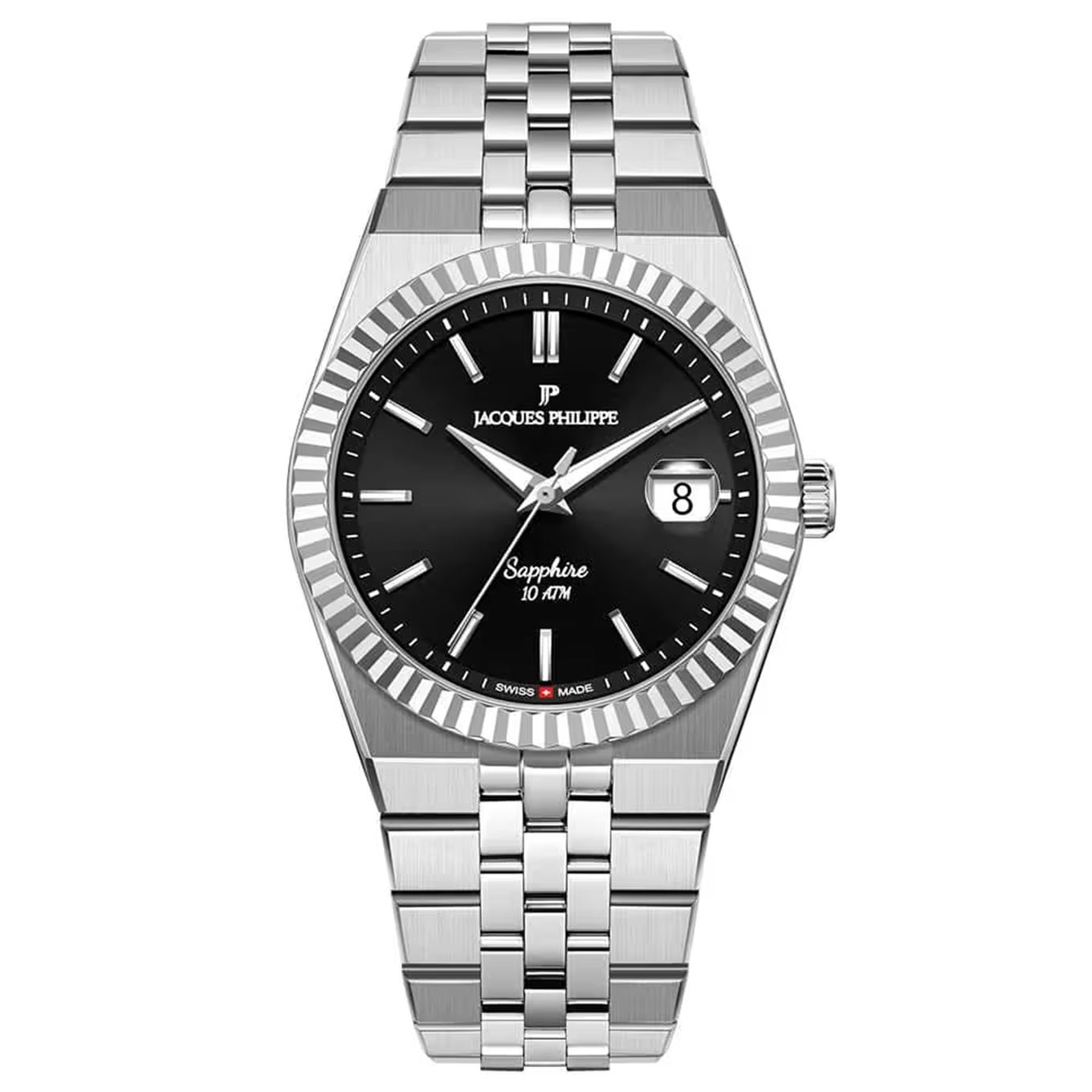 Jacques Philippe'nin seçkin koleksiyonundan bu özel saat modeli, modern ve etkileyici görünümü ile öne çıkıyor. Yuvarlak kasa yapısı ve Çelik kordon özelliği ile erkekler için ideal bir seçim. 10 ATM ile günlük kullanıma uygun olan bu şık saat, 39 mm kasa çapı ile mükemmel bir kullanım deneyimi sunuyor. Siyah kadranı ve Safir camı ile uzun ömürlü kullanım için tasarlandı.