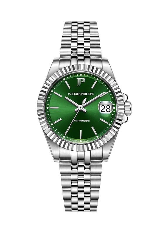 Jacques Philippe'nin seçkin koleksiyonundan bu özel saat modeli, göz alıcı detayları ile öne çıkıyor. Yuvarlak kasa yapısı ve Çelik kordon özelliği ile kadınlar için ideal bir seçim. 10 ATM ile günlük kullanıma uygun olan bu şık saat, 32 mm kasa çapı ile mükemmel bir kullanım deneyimi sunuyor. Yeşil kadranı ve Safir camı ile uzun ömürlü kullanım için tasarlandı.