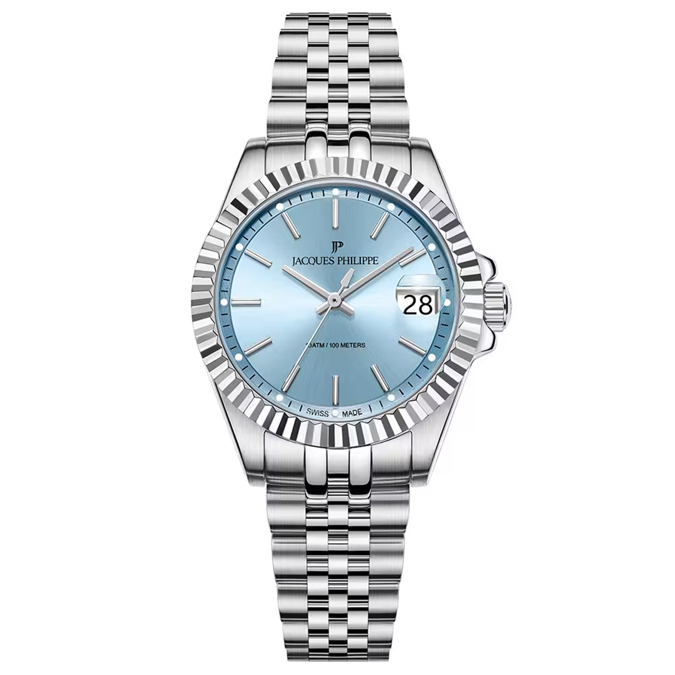 Jacques Philippe'nin seçkin koleksiyonundan bu özel saat modeli, üstün kalitesi ile öne çıkıyor. Yuvarlak kasa yapısı ve Çelik kordon özelliği ile kadınlar için ideal bir seçim. 10 ATM ile günlük kullanıma uygun olan bu şık saat, 32 mm kasa çapı ile mükemmel bir kullanım deneyimi sunuyor. Mavi kadranı ve Safir camı ile uzun ömürlü kullanım için tasarlandı.