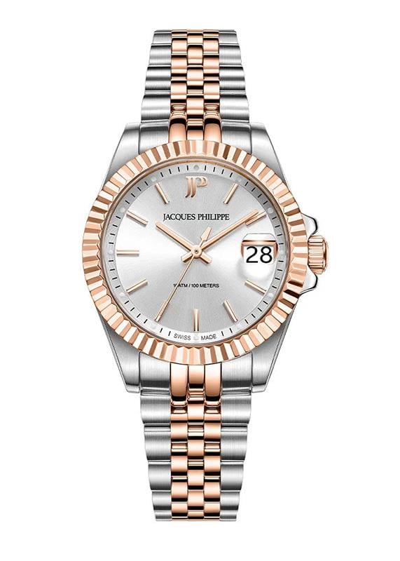 Jacques Philippe'nin seçkin koleksiyonundan bu özel saat modeli, şık ve zarif tasarımı ile öne çıkıyor. Yuvarlak kasa yapısı ve Çelik kordon özelliği ile kadınlar için ideal bir seçim. 10 ATM ile günlük kullanıma uygun olan bu şık saat, 32 mm kasa çapı ile mükemmel bir kullanım deneyimi sunuyor. Gümüş Tonu kadranı ve Safir camı ile uzun ömürlü kullanım için tasarlandı.