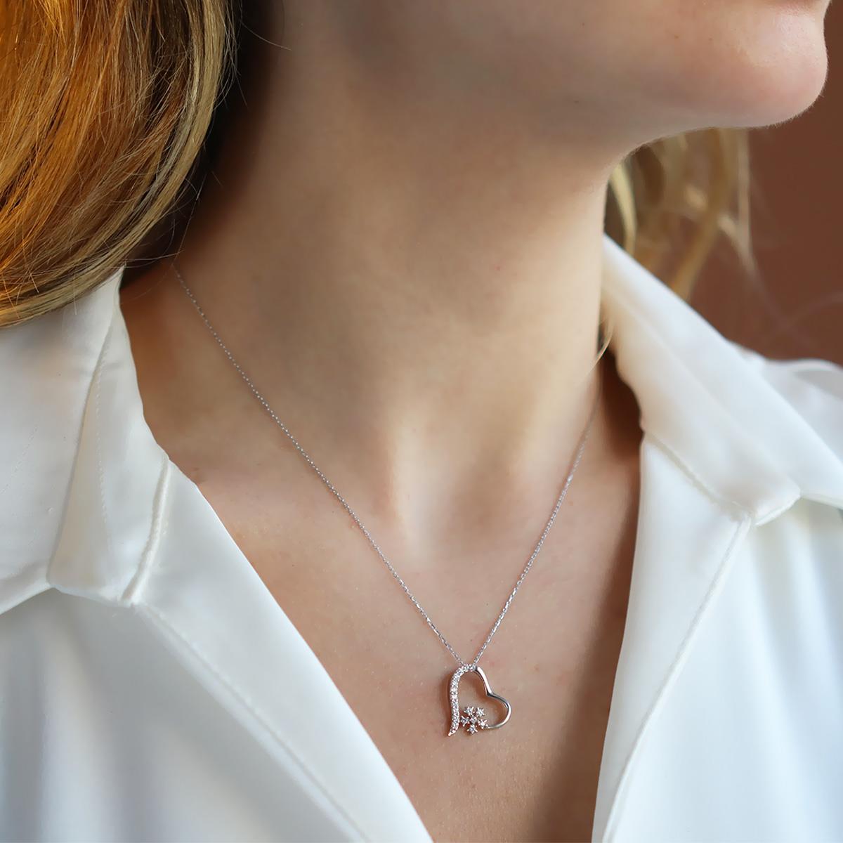 Kalp Kar Taneli 925 Ayar Gümüş Işıltı Kolye (KHYLT000114291)