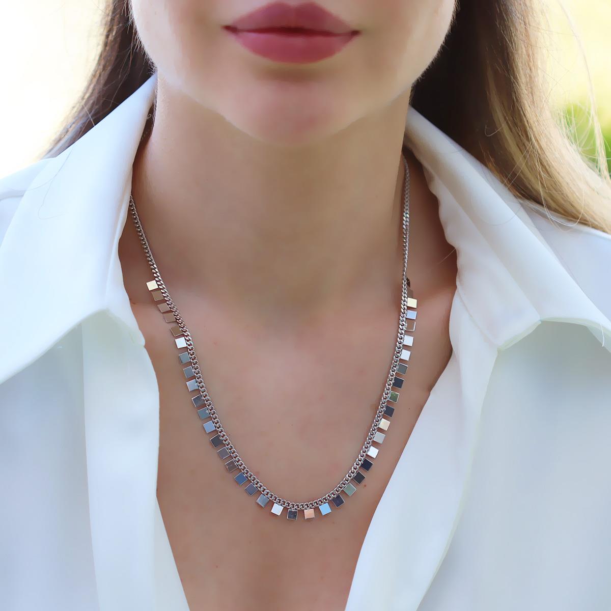 Kare Trend Pul Gümüş Kolye (KLDUZ000000394)