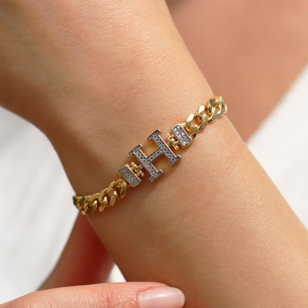 Kişiye Özel Taşlı Harf Gümüş Gurmet Bileklik (kharf250630)