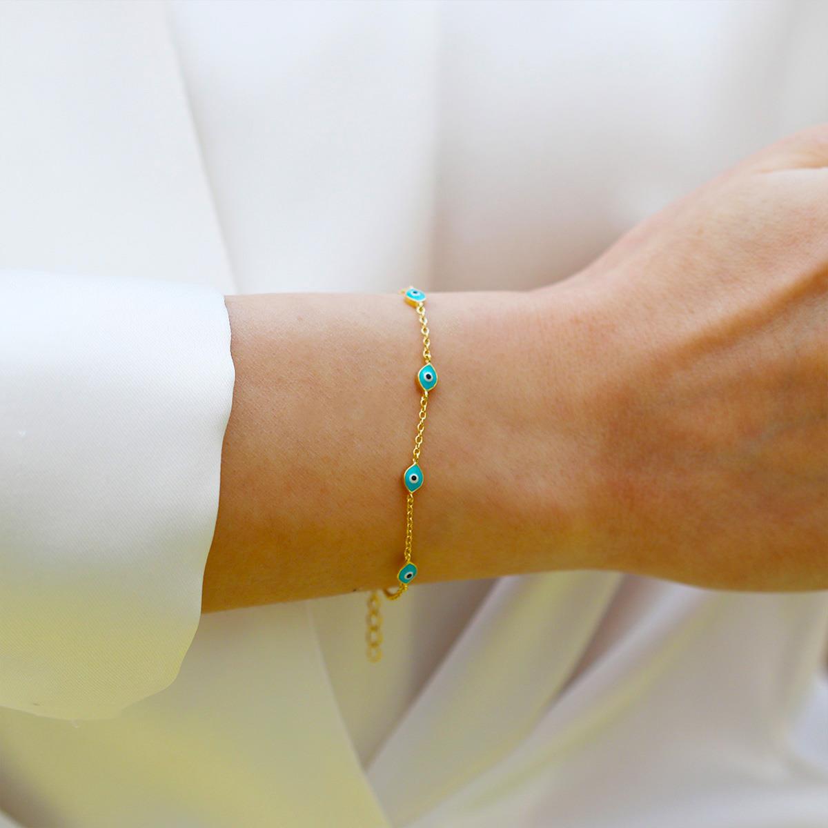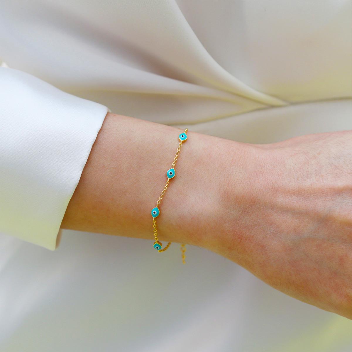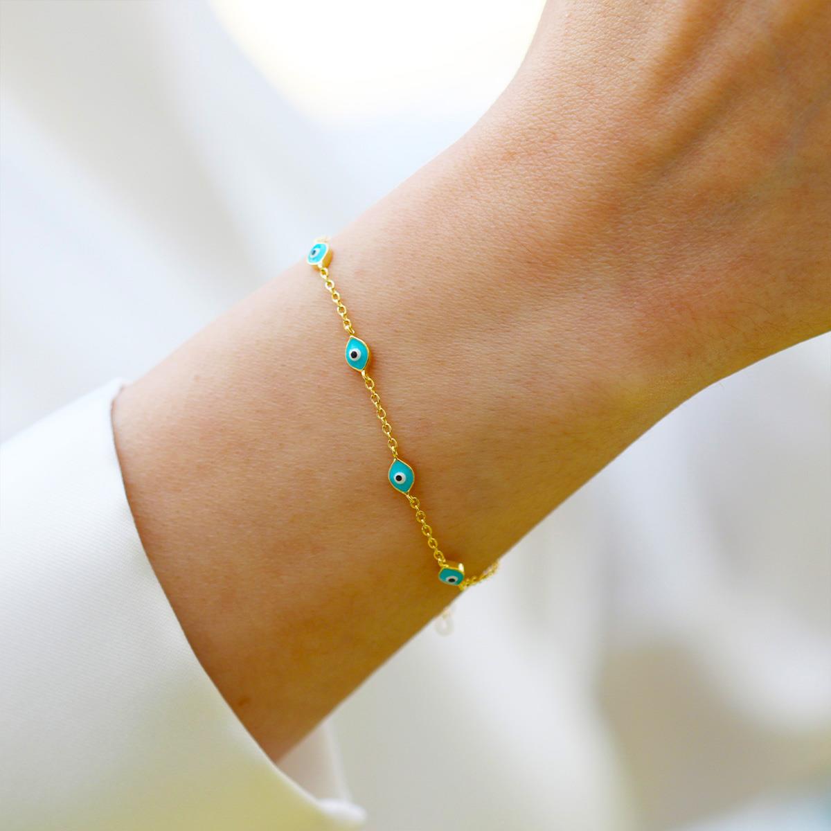 Mavi Mineli Göz Modeli Gold Gümüş Bileklik