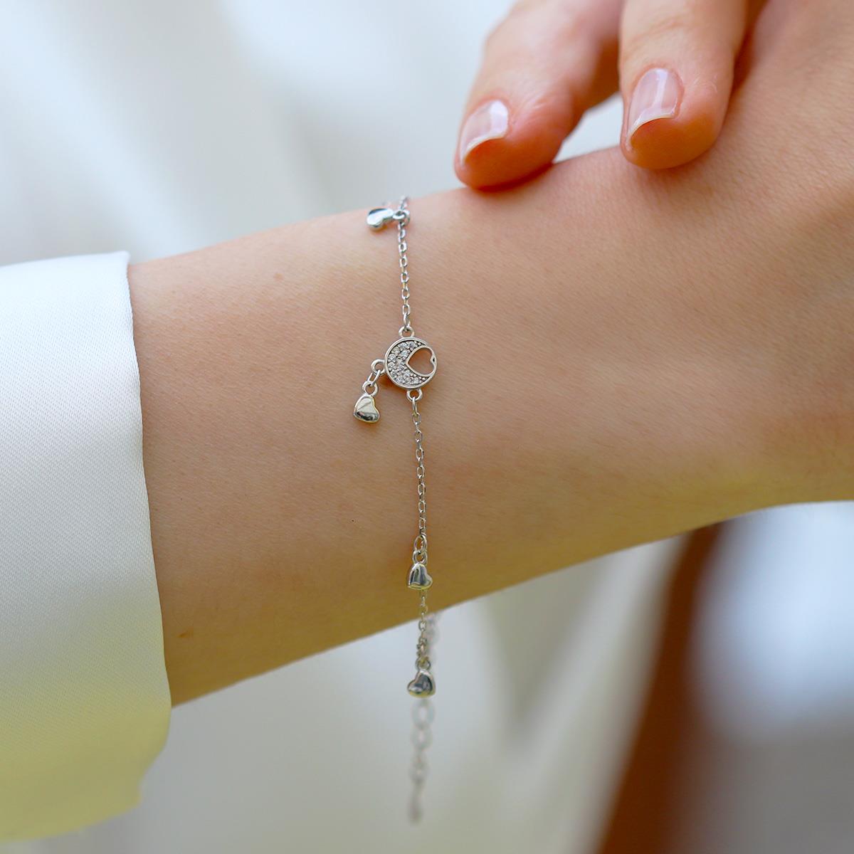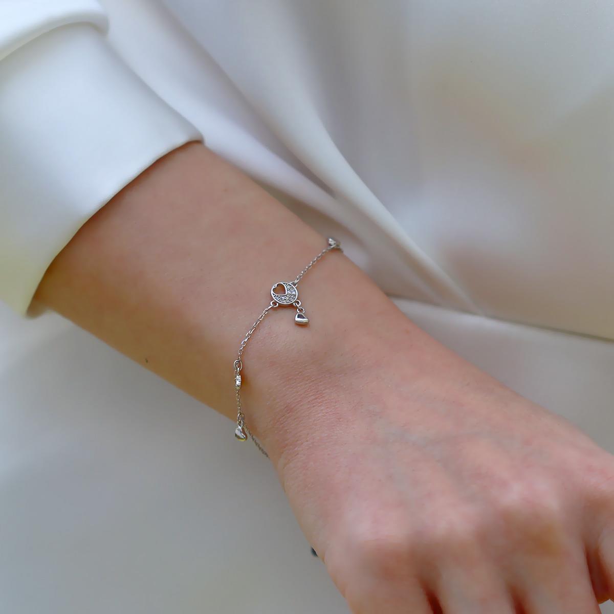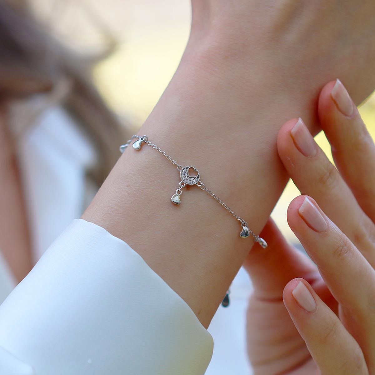 Mini Kalpli Taşlı Gümüş Bileklik (BLZRK000027488)