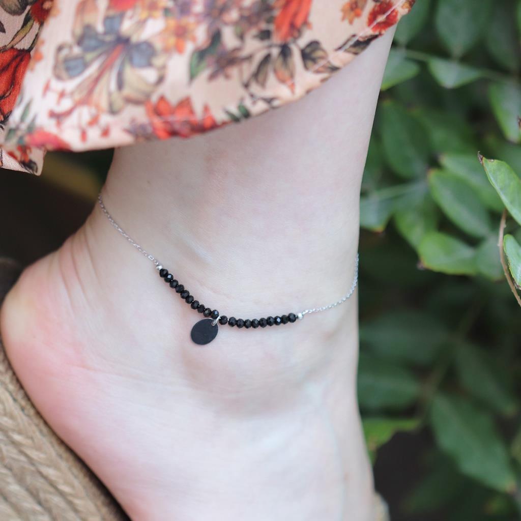 Oniks Taşlı Pul Gümüş Halhal (khylt096823)
