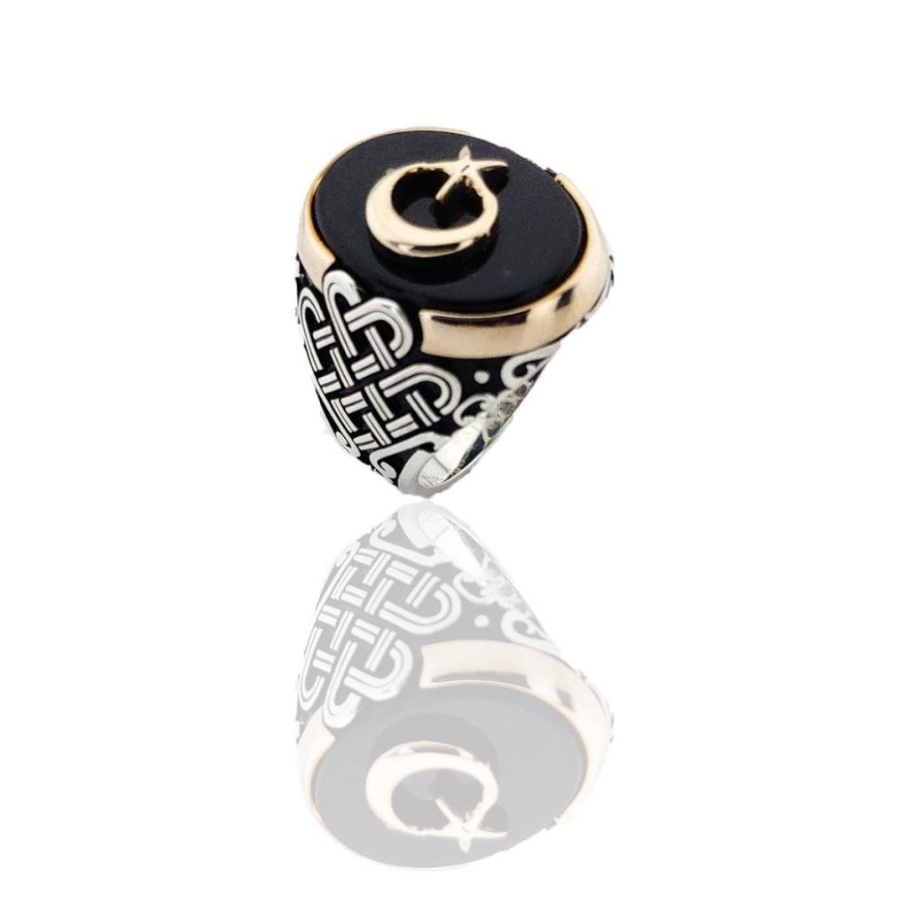 Onix Taş Üzerine Ay Yıldız İşlemeli Erkek Yüzük (yerk019611)
