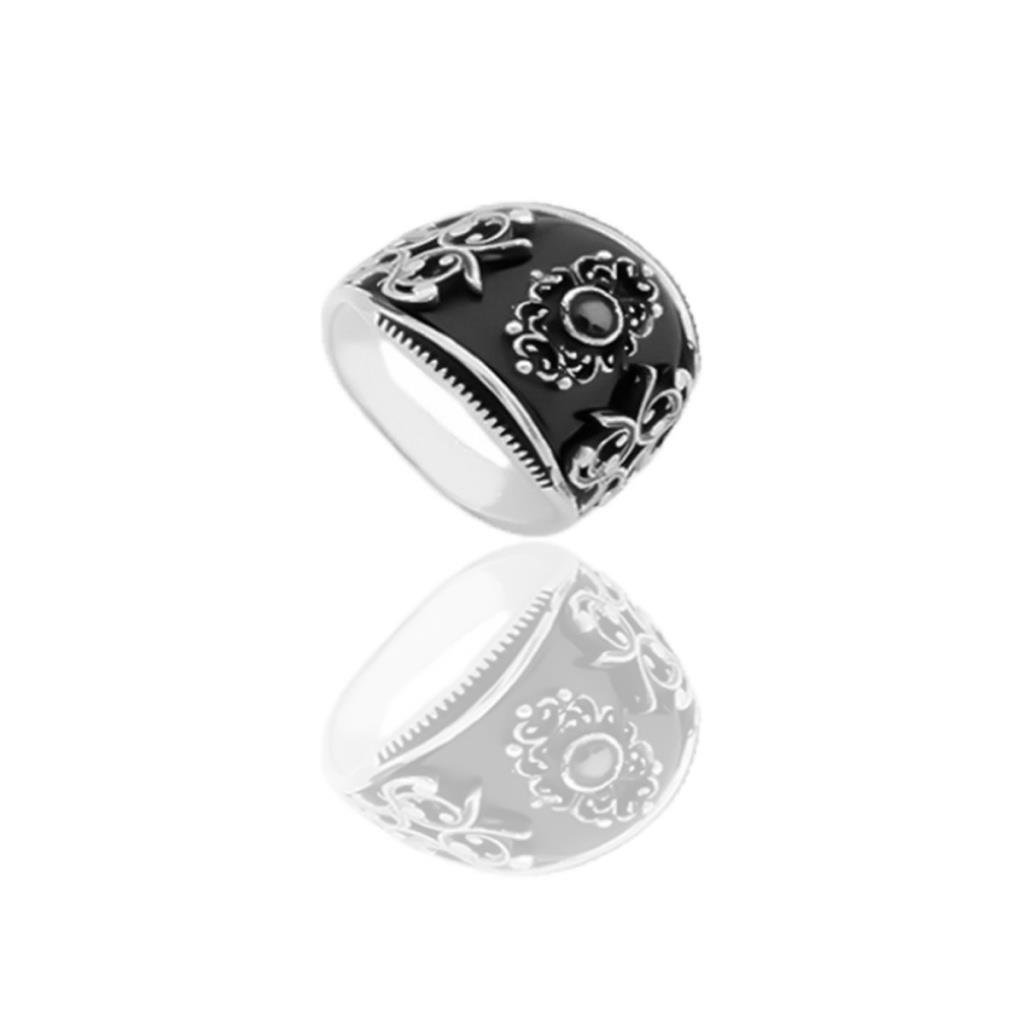 Onix Taş Üzerine İşlemeli Gümüş Erkek Yüzüğü (Yerk019019777)