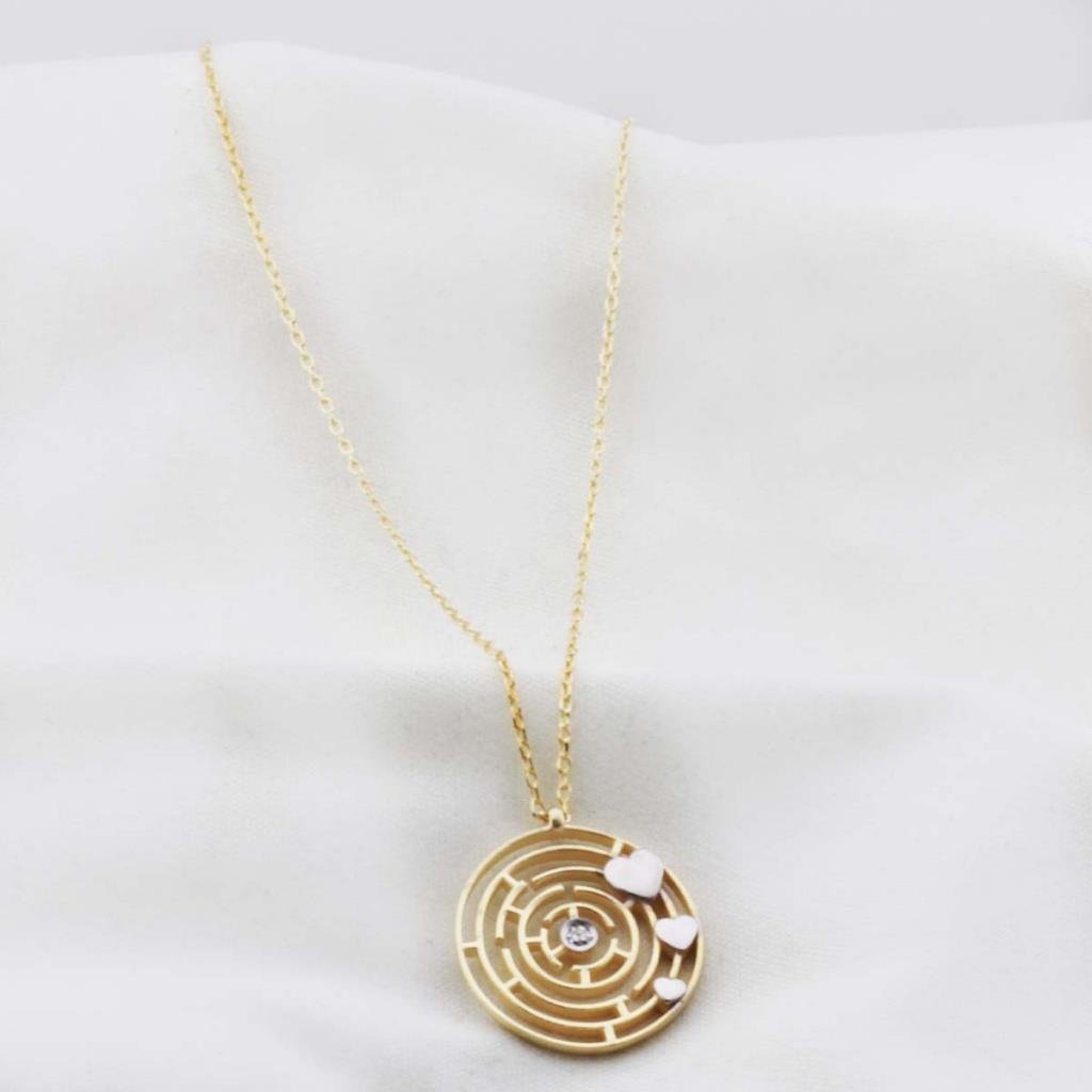 Pırlanta Taş Labirent 0.02 CT Gold Micron Kaplama Gümüş Kolye (klprlnt000091)