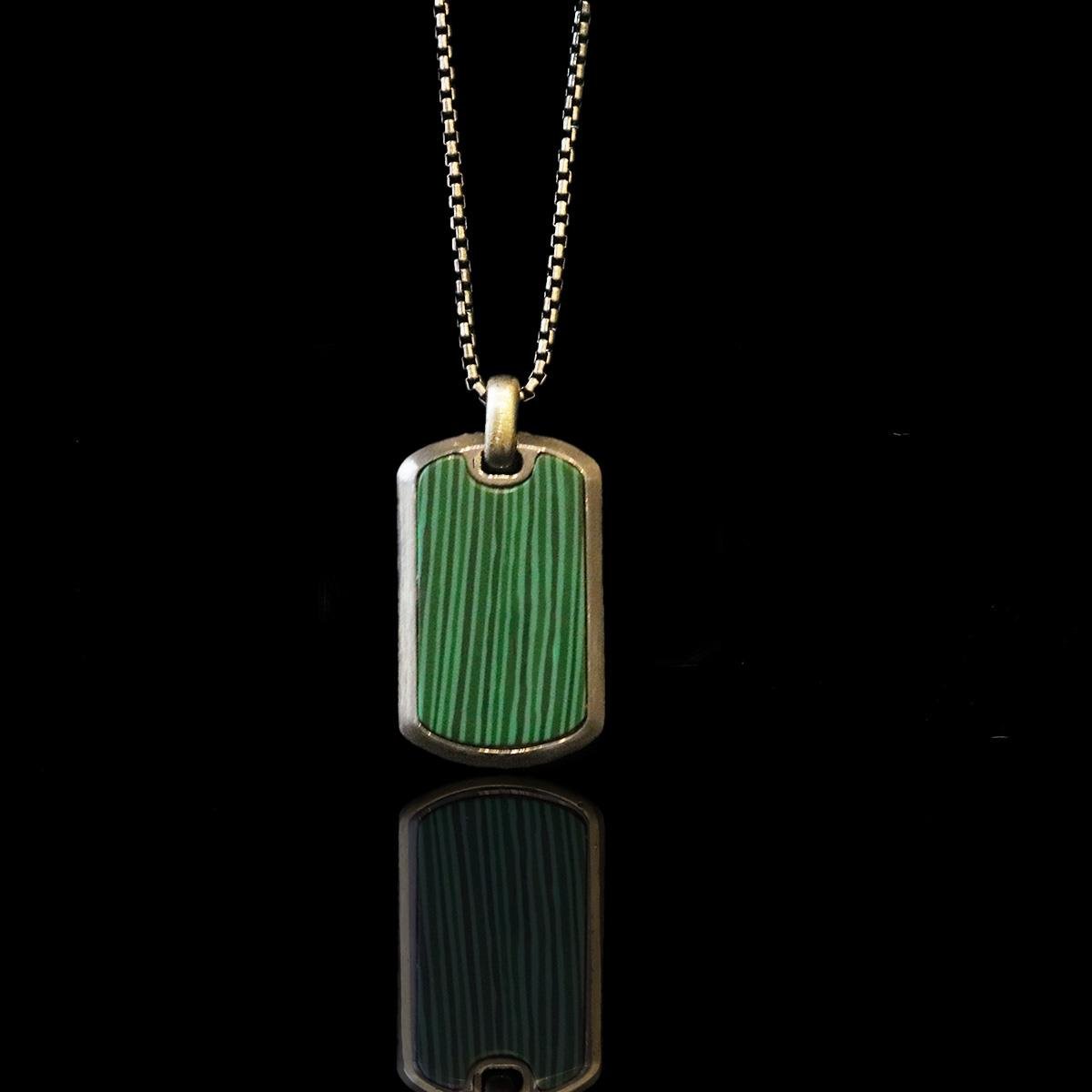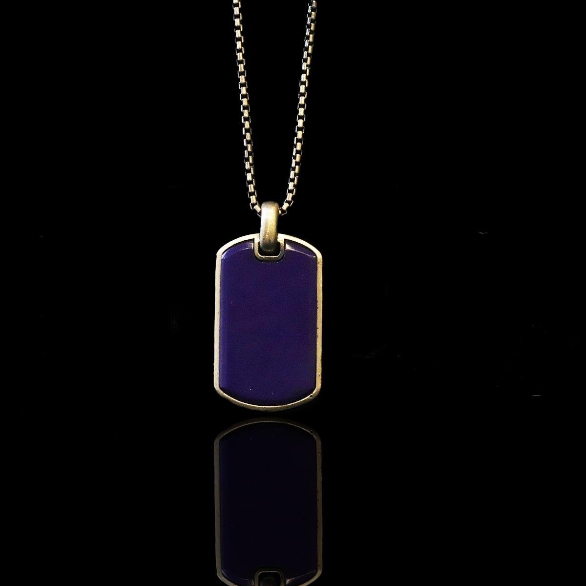 Plaka Mineli Oksitli Gümüş Erkek Kolye (KLYZRK00000062)