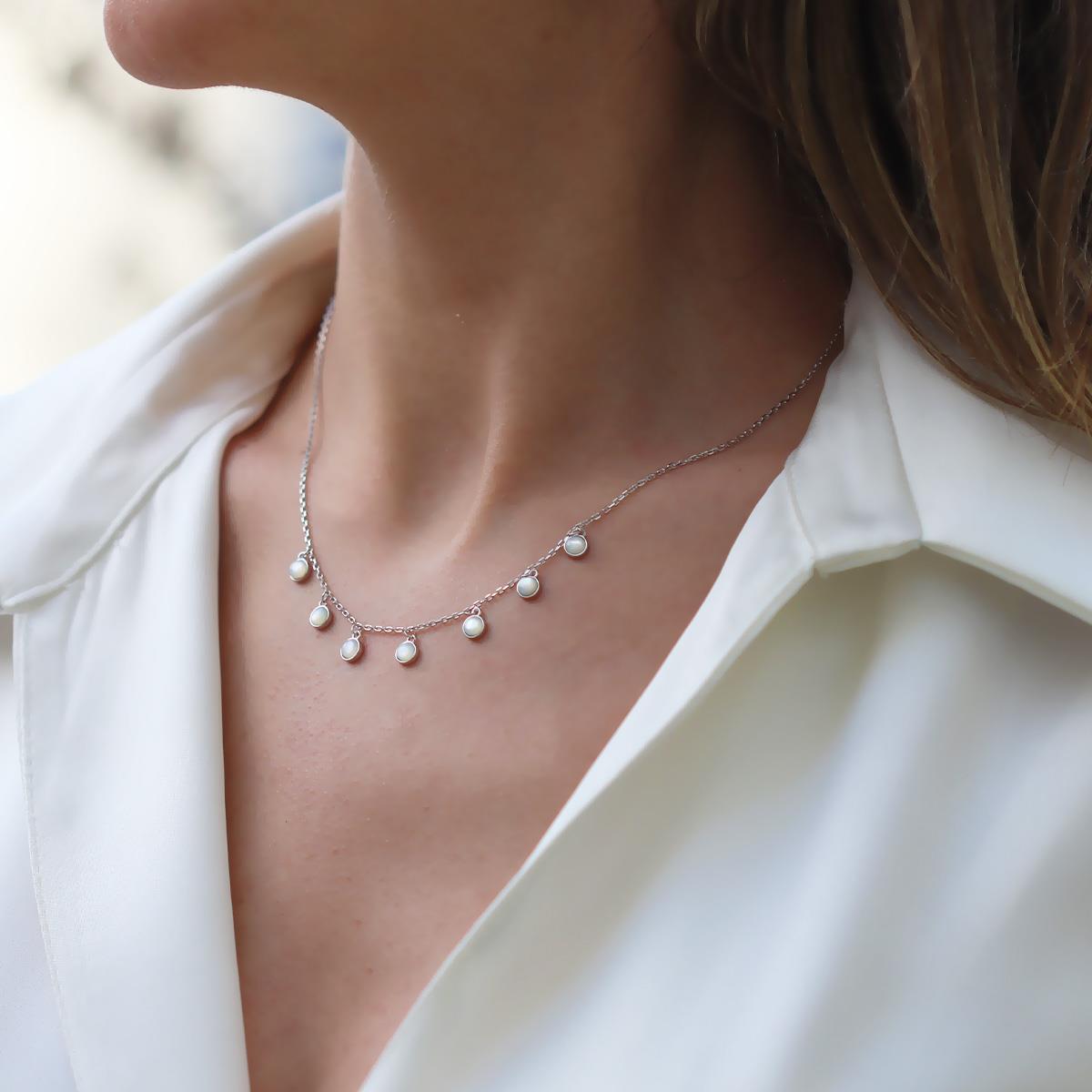 Sedef Taşlı Pul Trend Gümüş Kolye