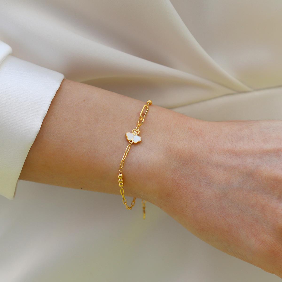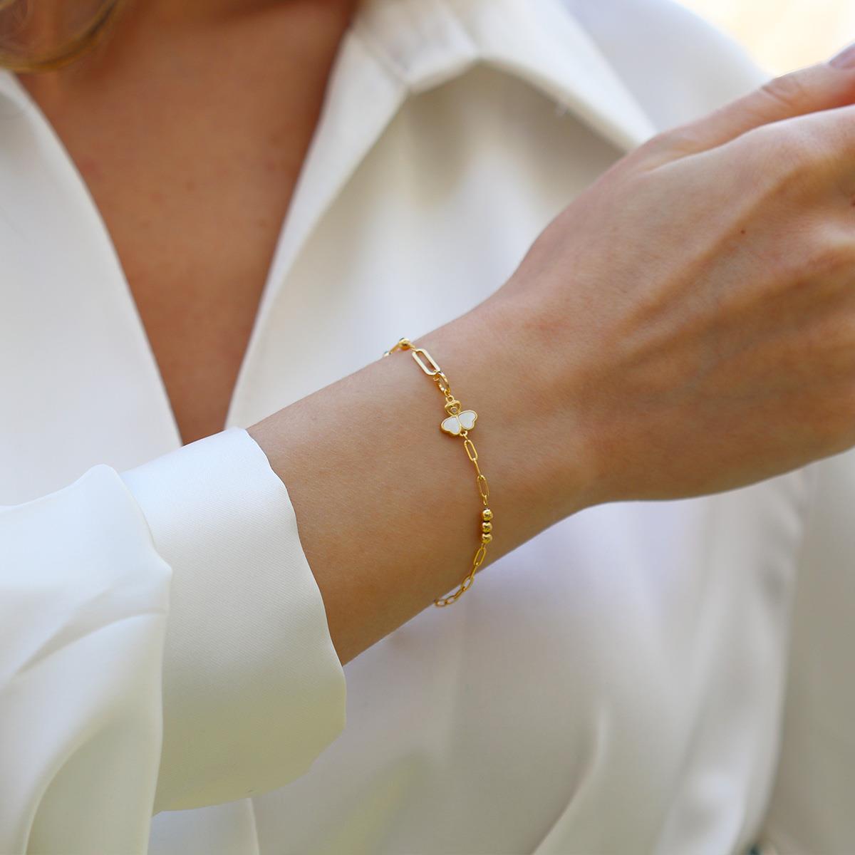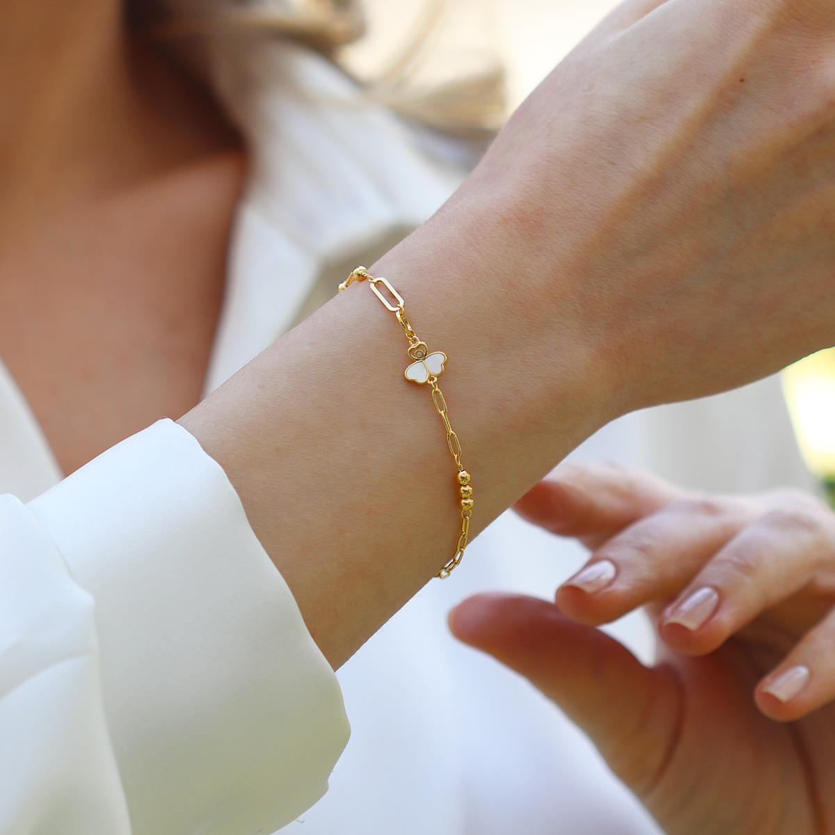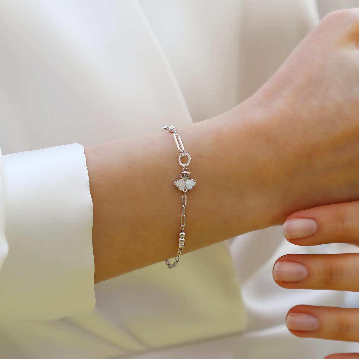 Sedefli Yonca Model Gümüş Bileklik (BLZRK000028307)