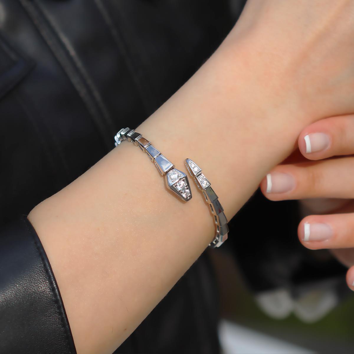 Serpent Zirkon Taşlı Gümüş Kelepçe (ZRKLP000000376)