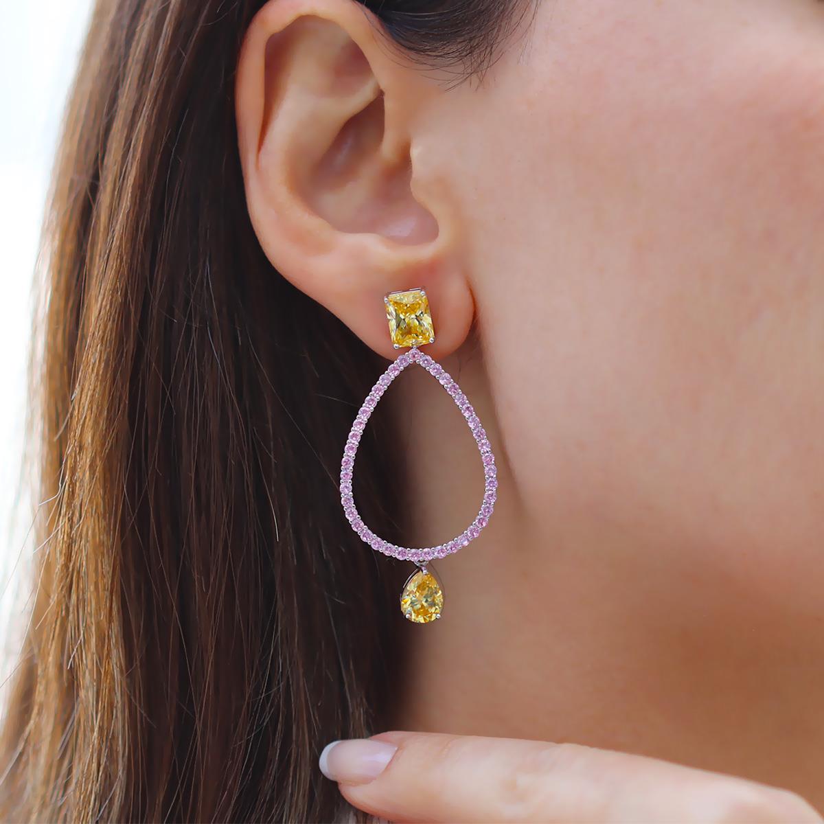 925 ayar gümüşten üretilen bu özel parça, damla formundaki pembe mini zirkon taşlar ve sitrin taşlarının sıcak parıltısıyla göz kamaştırır.
