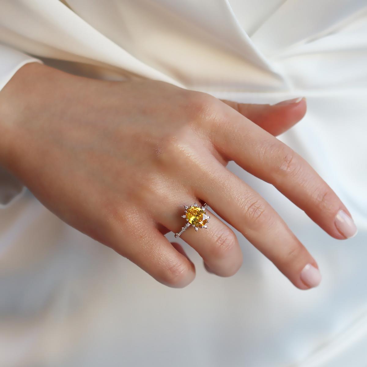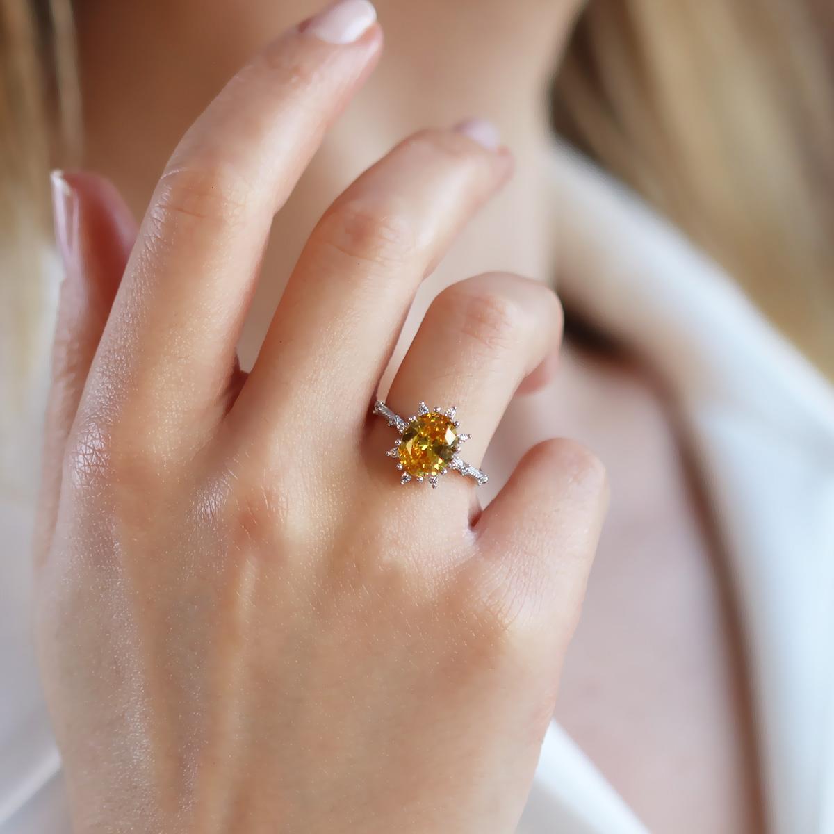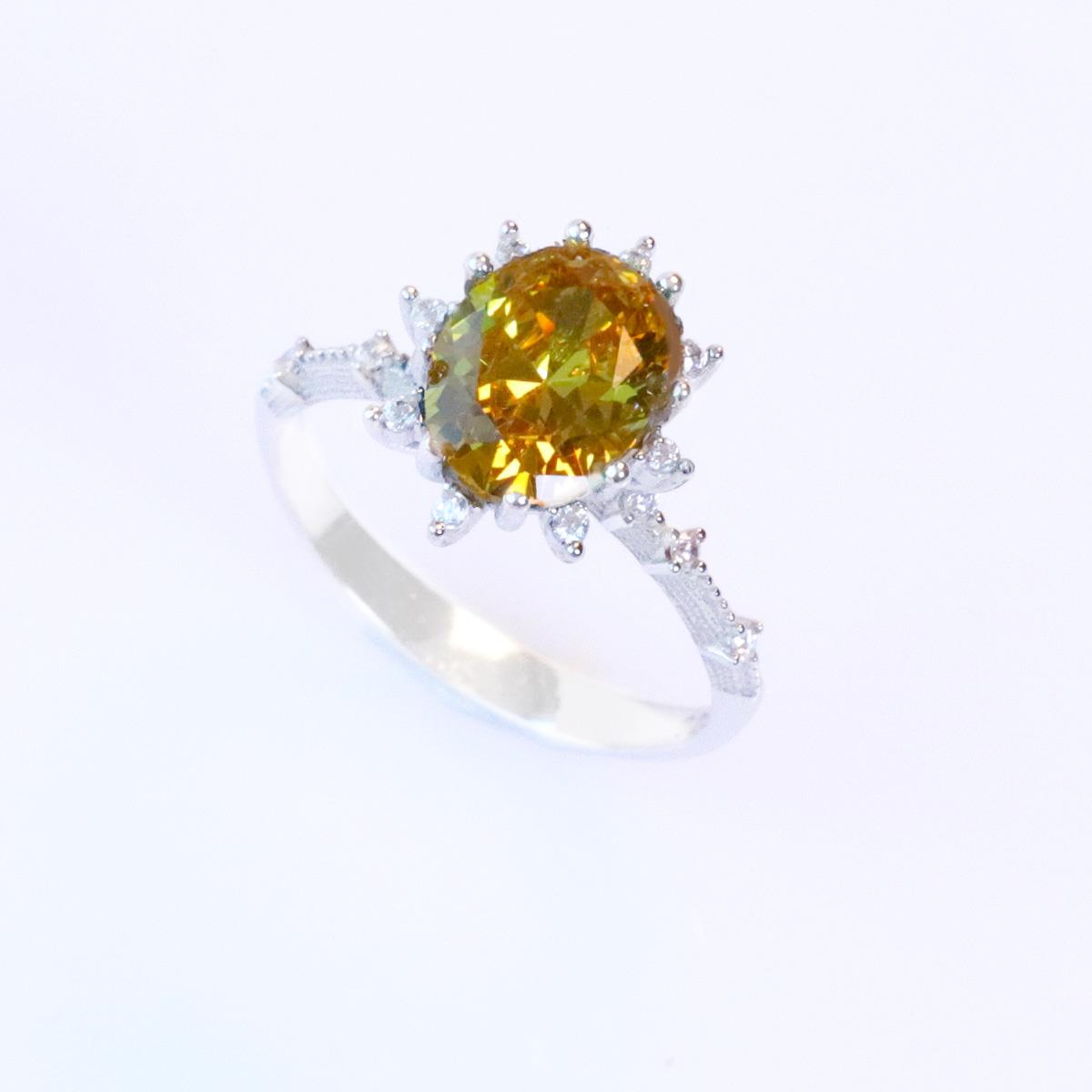 Sitrin Taşlı Elips Lotus Çiçeği Gümüş Yüzük (zryzk011006)