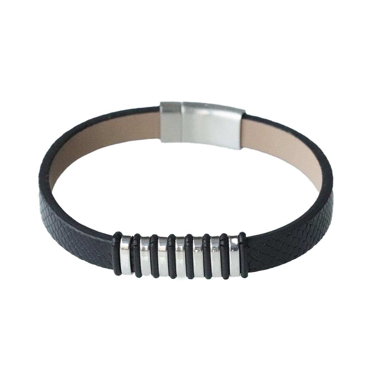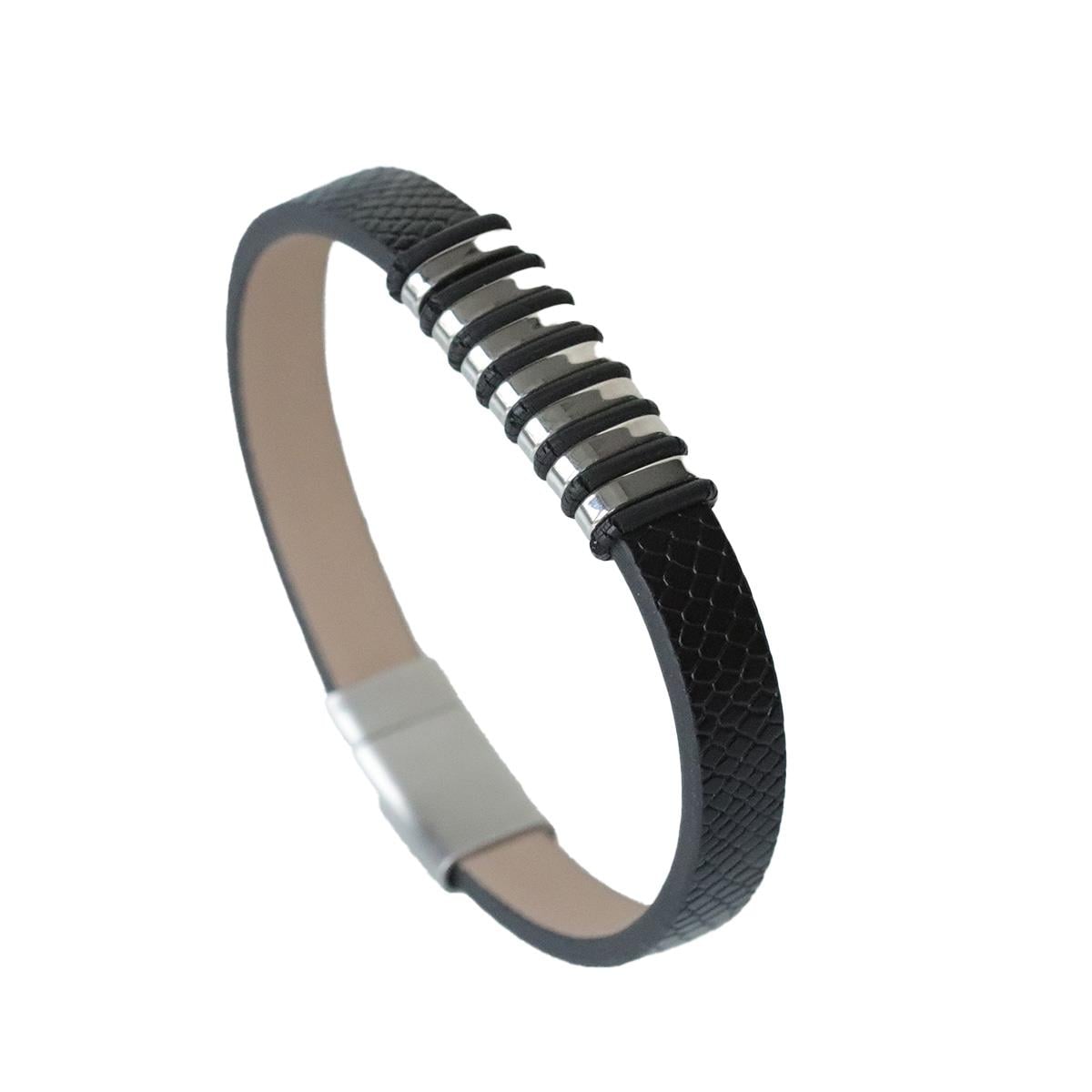 Siyah Crocodile Deri Çelik Bileklik (clkblk003885)