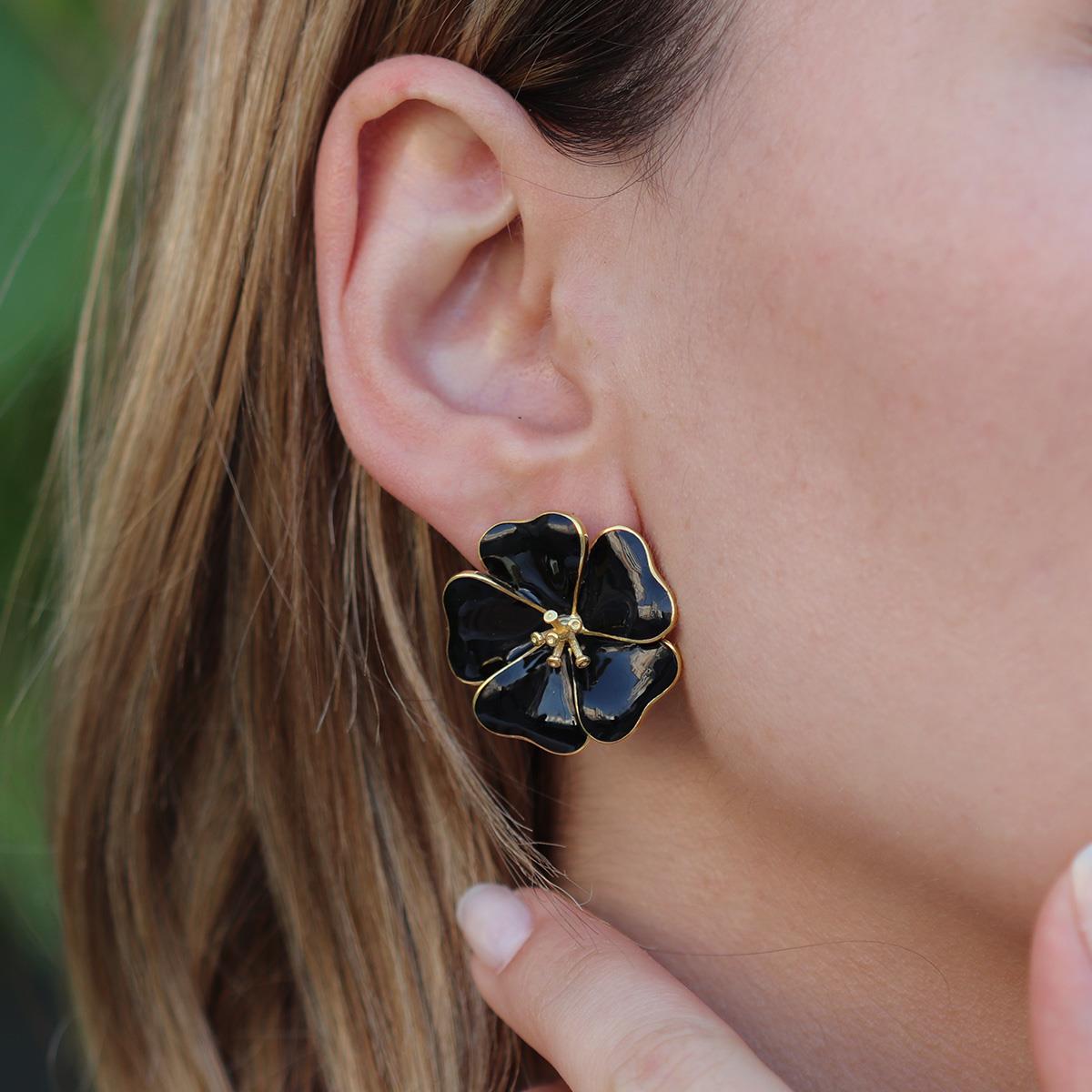 Siyah Mine İşli Gold Kaplama Çiçek Gümüş Küpe (kpzrk046285)