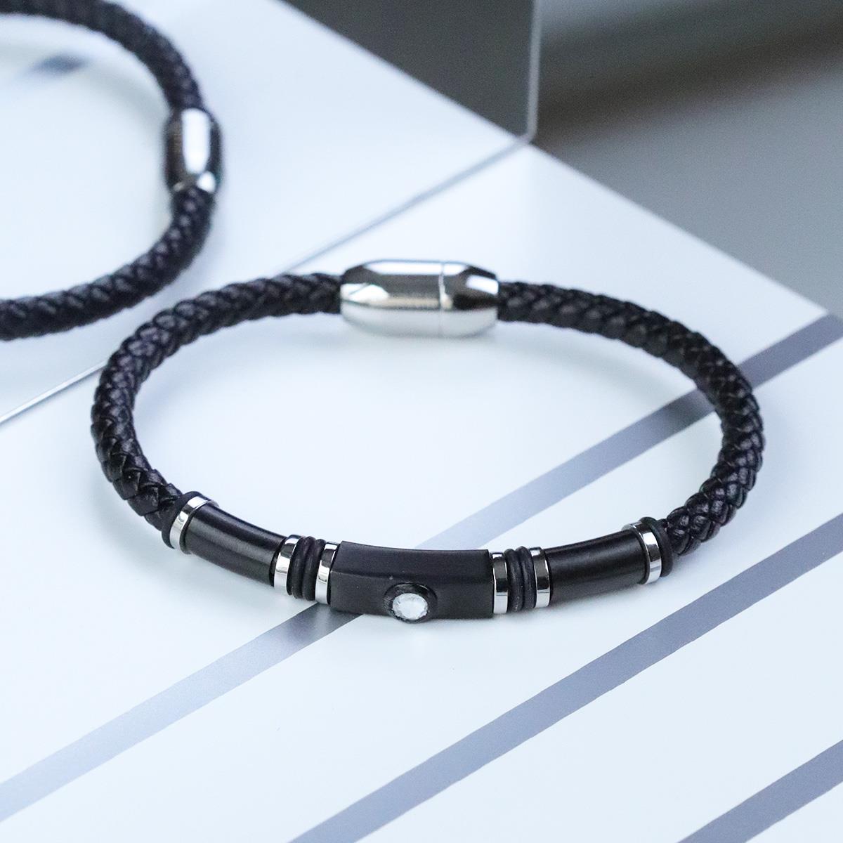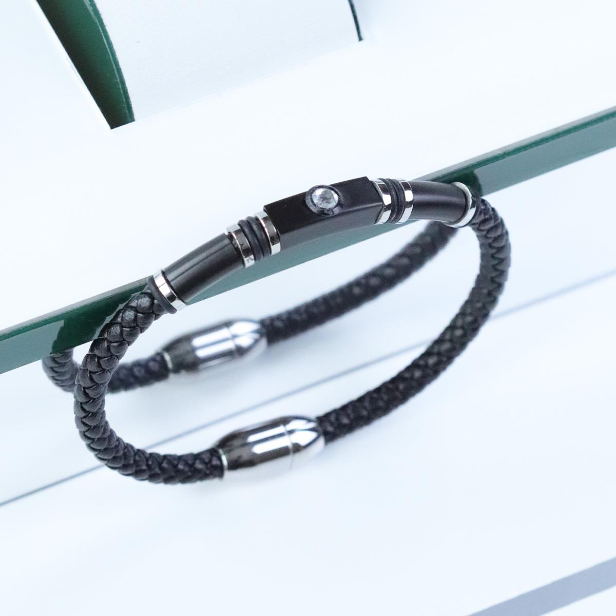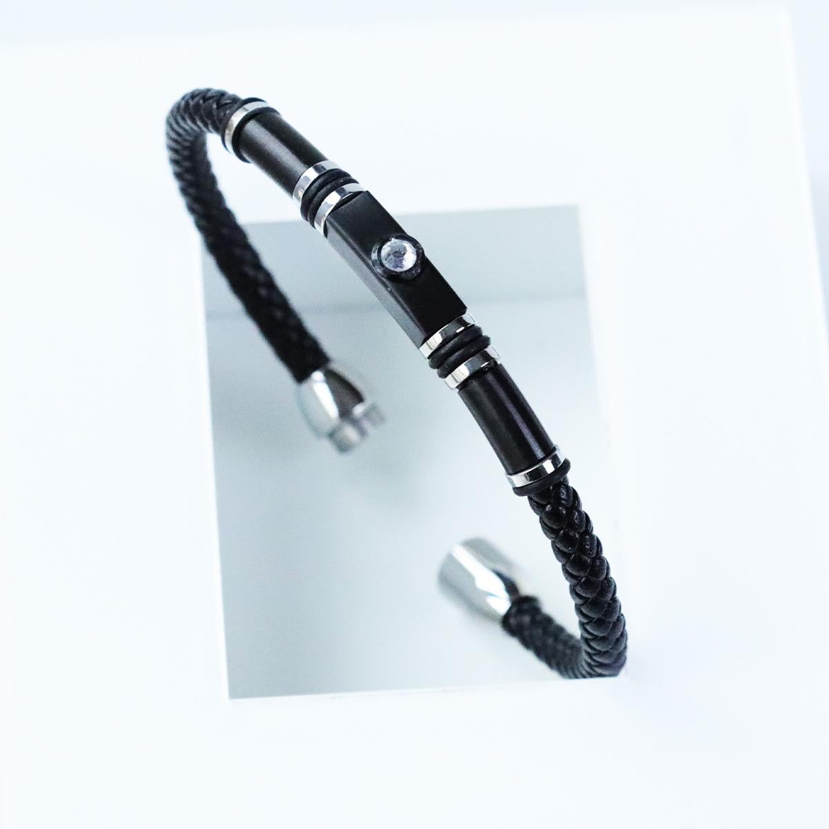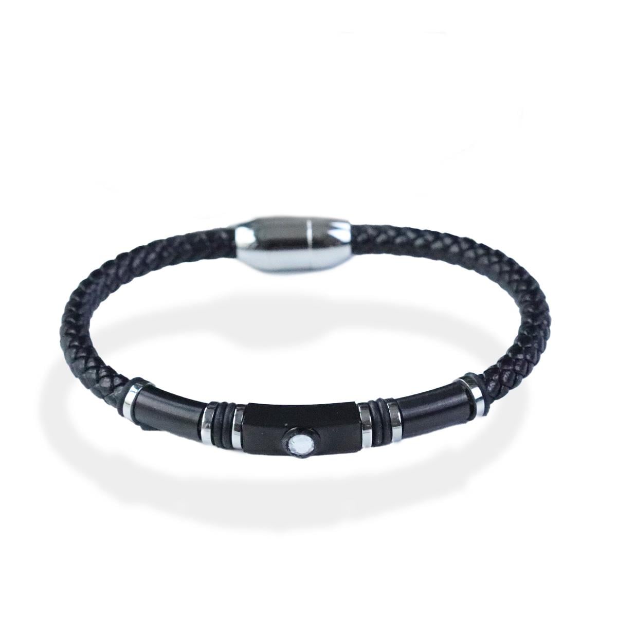 Taşlı Örgü Deri Çelik Bileklik (DBLK5061)