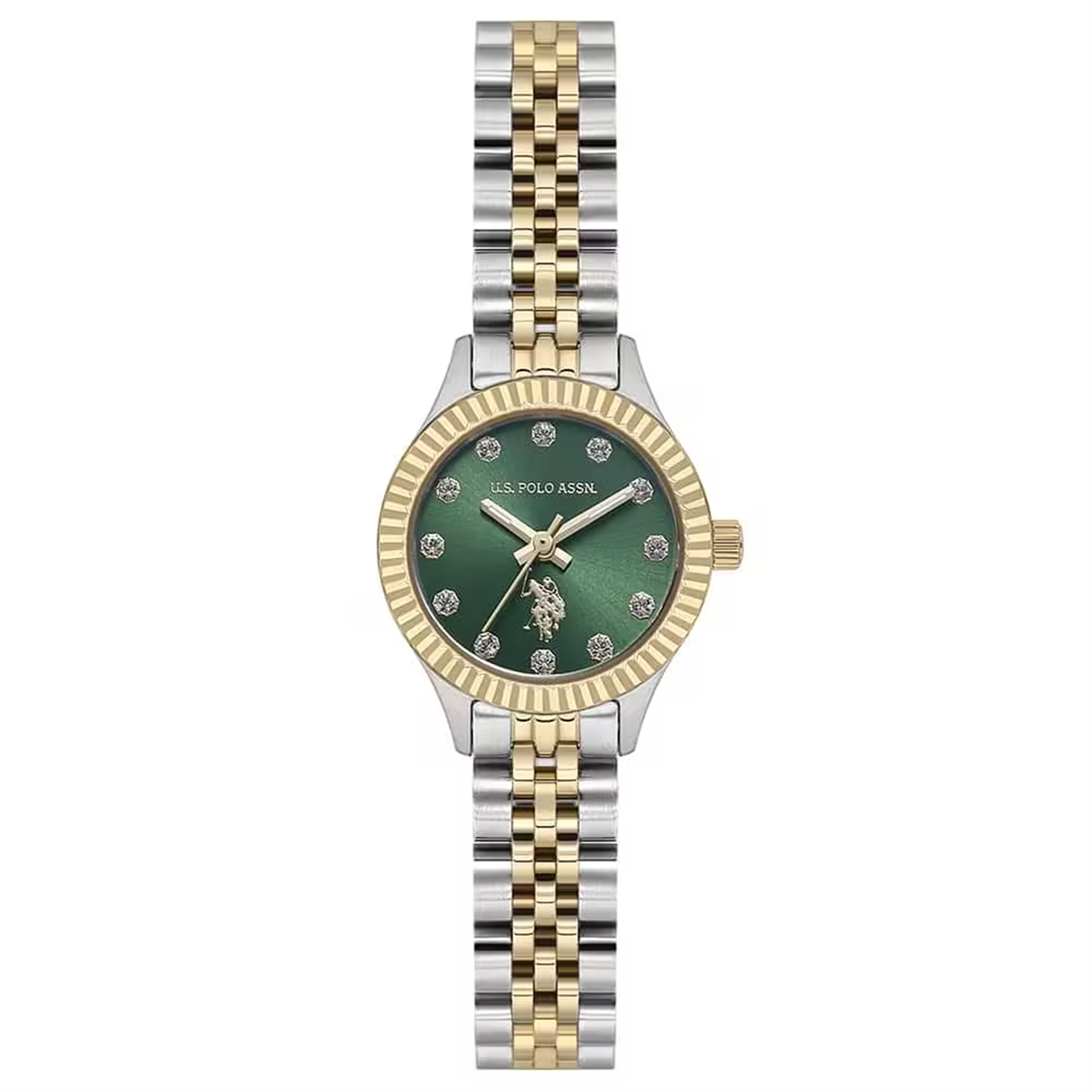U.S. Polo Assn.'nin seçkin koleksiyonundan bu özel saat modeli, dayanıklı yapısı ile öne çıkıyor. Yuvarlak kasa yapısı ve Çelik kordon özelliği ile kadınlar için ideal bir seçim. 5 ATM ile günlük kullanıma uygun olan bu şık saat, 23 mm kasa çapı ile mükemmel bir kullanım deneyimi sunuyor. Yeşil kadranı ve Mineral camı ile uzun ömürlü kullanım için tasarlandı.