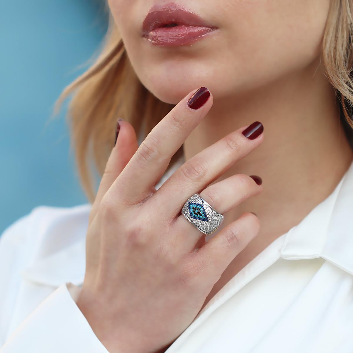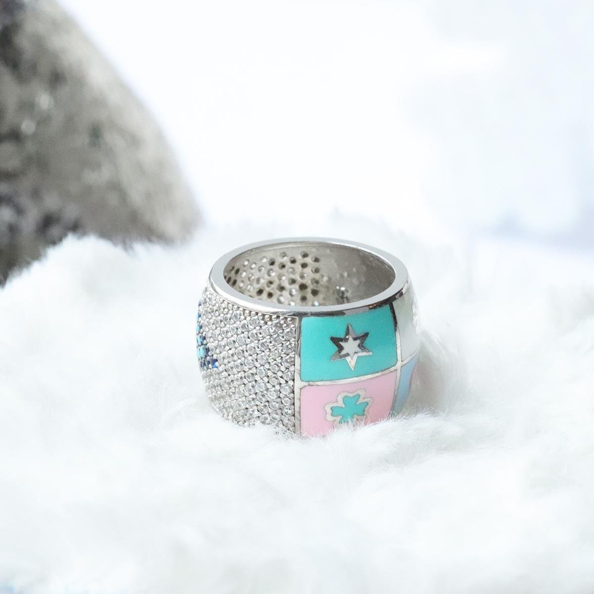 Wonderland Eye Çift Taraflı Renkli Mine İşli Gümüş Yüzük (yzrkn032784)