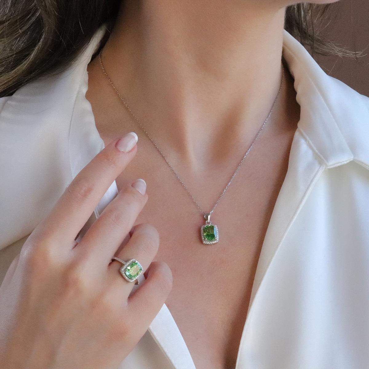 Yeşil Icecut Taşlı Gümüş Set (ZR2TK000017317)