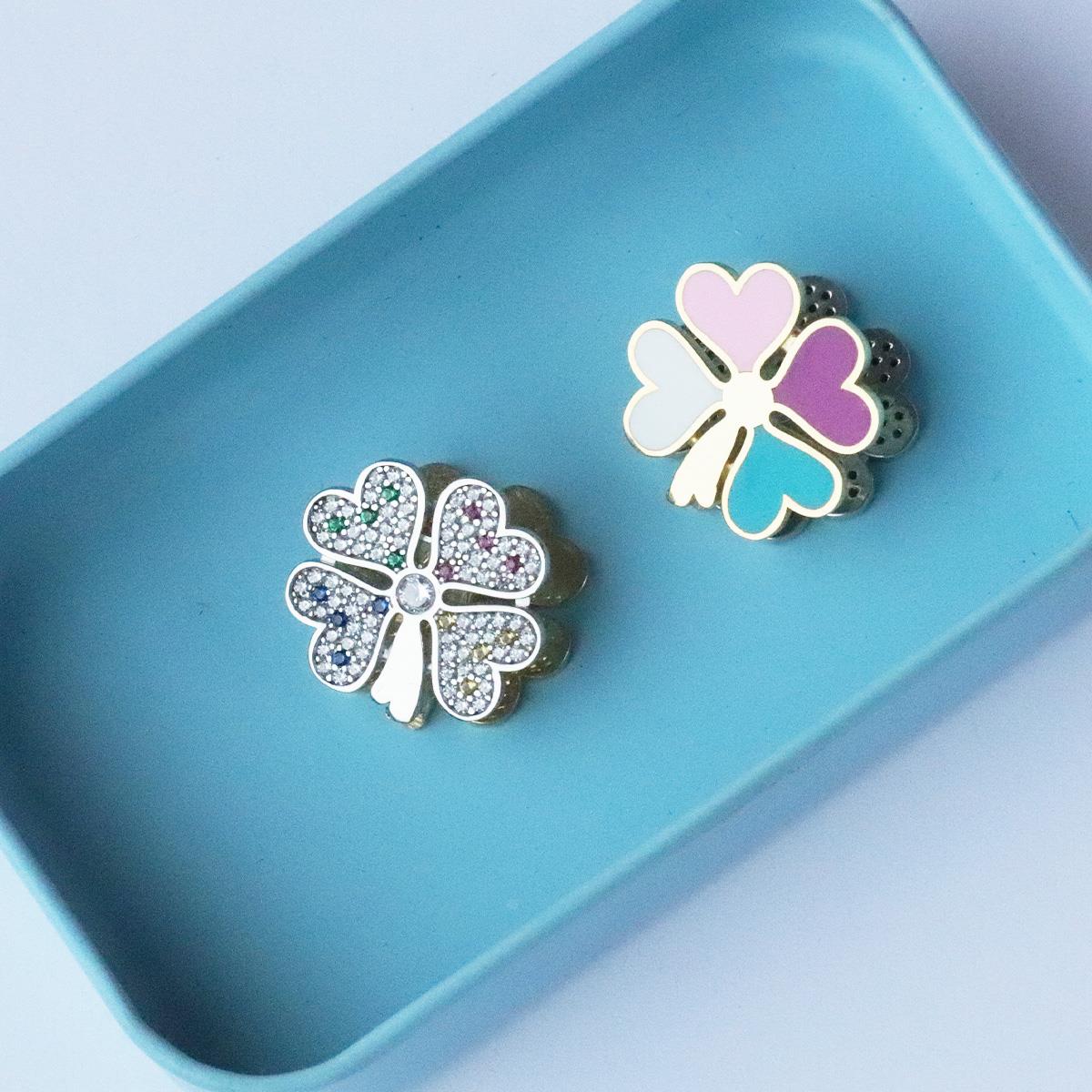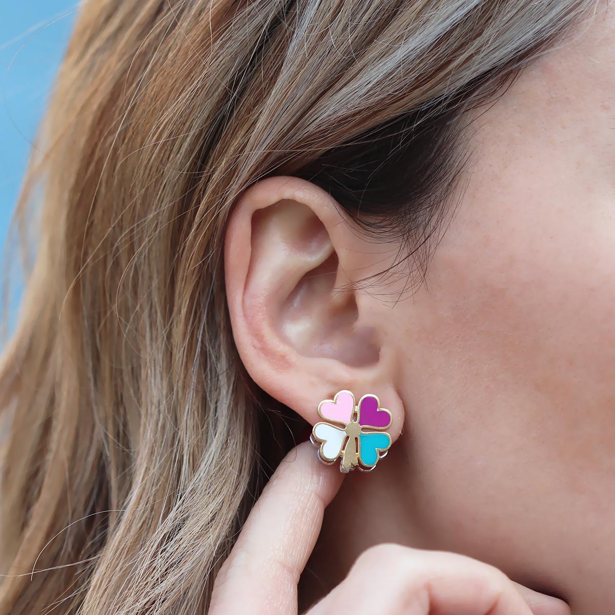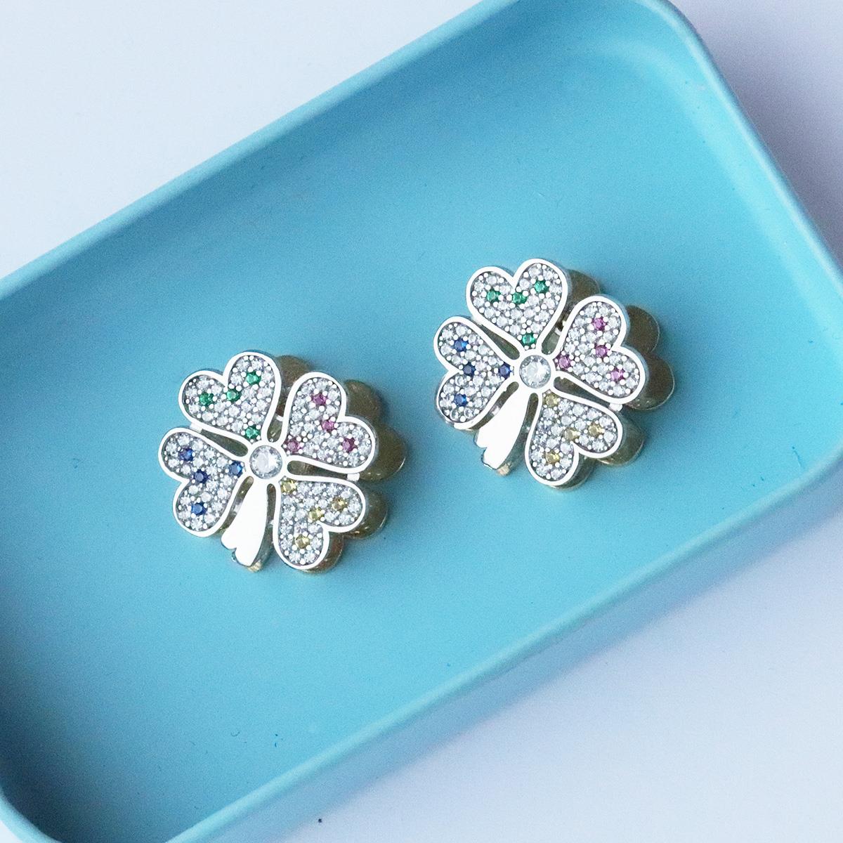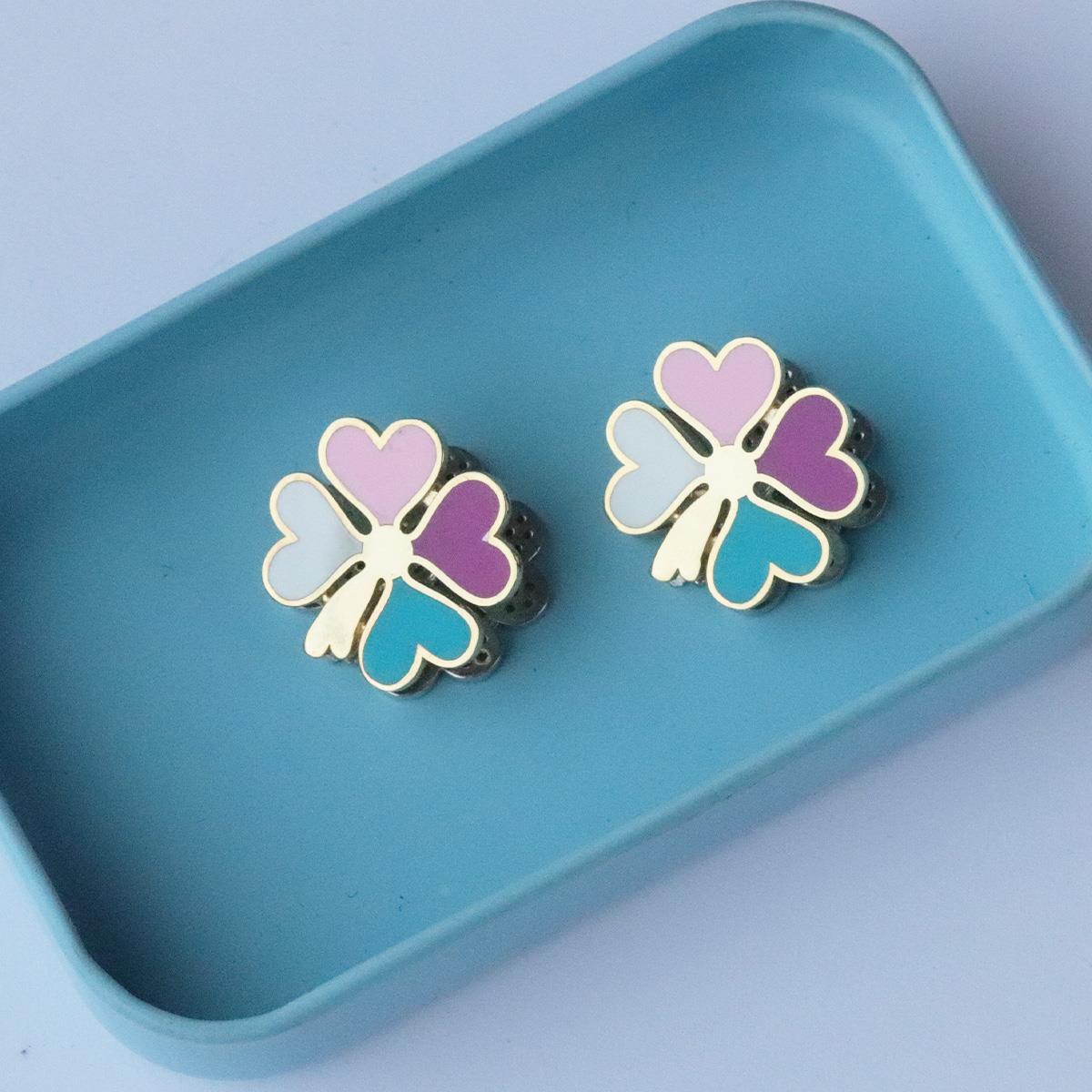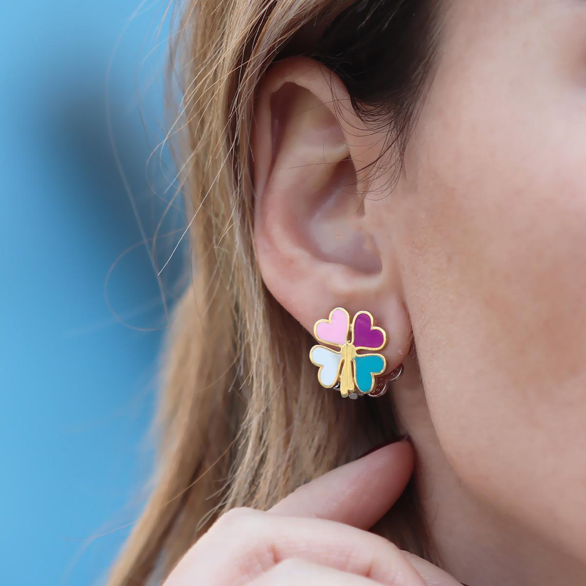 Klasik Yonca Figürünü Renklendirip Harika Işıltıyla Birleştirilip Tasarlanan Gümüş Küpemiz...