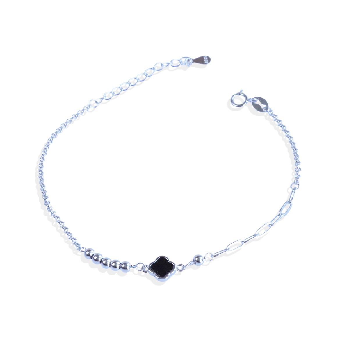 Yonca Siyah Mineli Trend Gümüş Bileklik (BLZRK000088719)